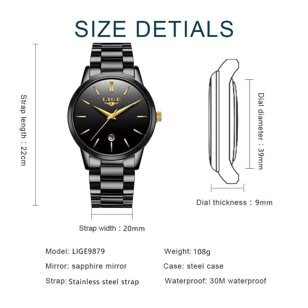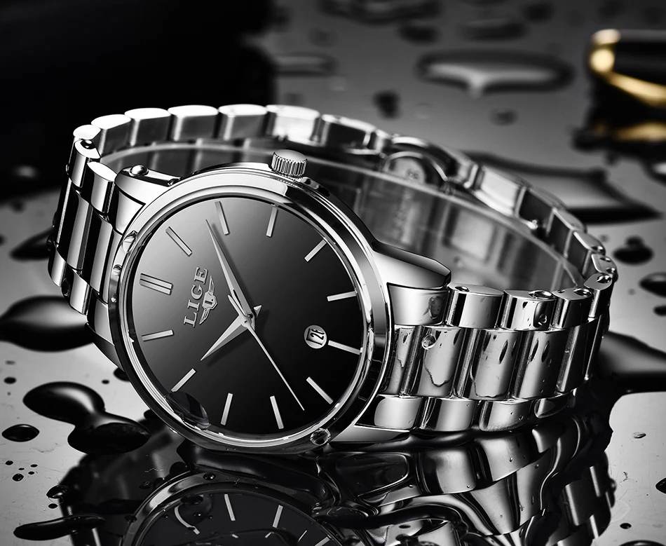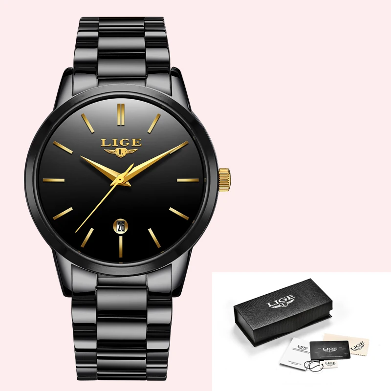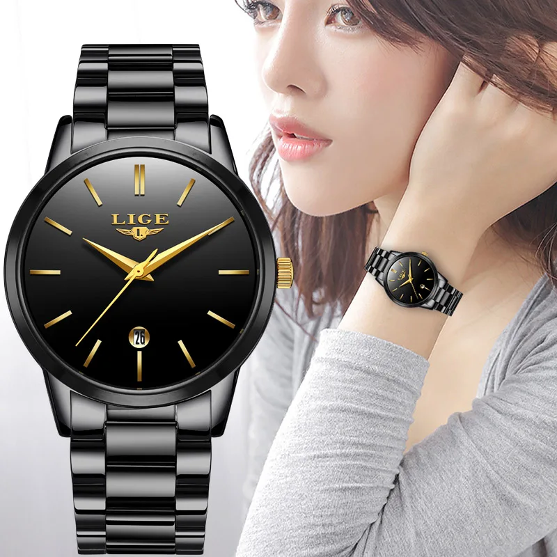 Часы наручные LIGE женские кварцевые из нержавеющей стали, брендовые Роскошные спортивные водонепроницаемые с календарем