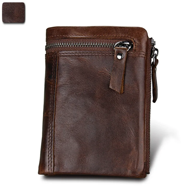 Мужской кошелек из натуральной кожи, с отделением для монет, на молнии