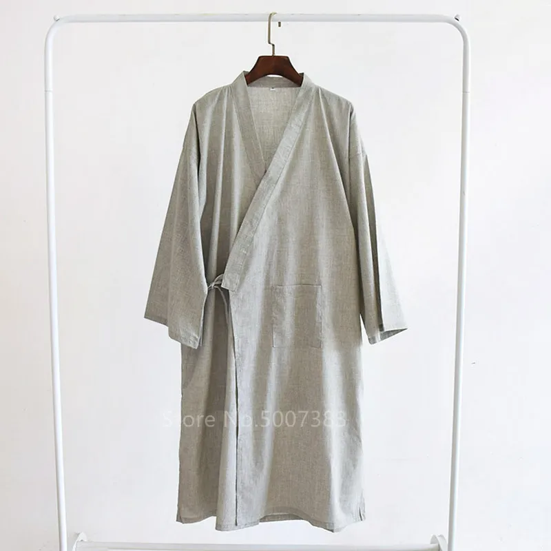 Традиционное японское кимоно для мужчин и женщин домашняя пижама юката одежда для сна 100% хлопок однотонный халат для спа ночная рубашка одежда для отдыха
