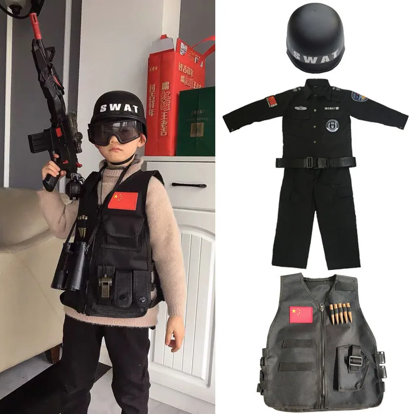 Спецодежда для мальчиков и девочек, полицейская униформа, детский подарок на день рождения и Рождество, костюм для косплея, детский костюм спецназа, армия, выступление