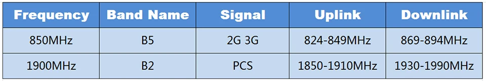 frequency rangeUplink:824-849/1850-1910MHz Downlink:869-894/1930-1990 MHz