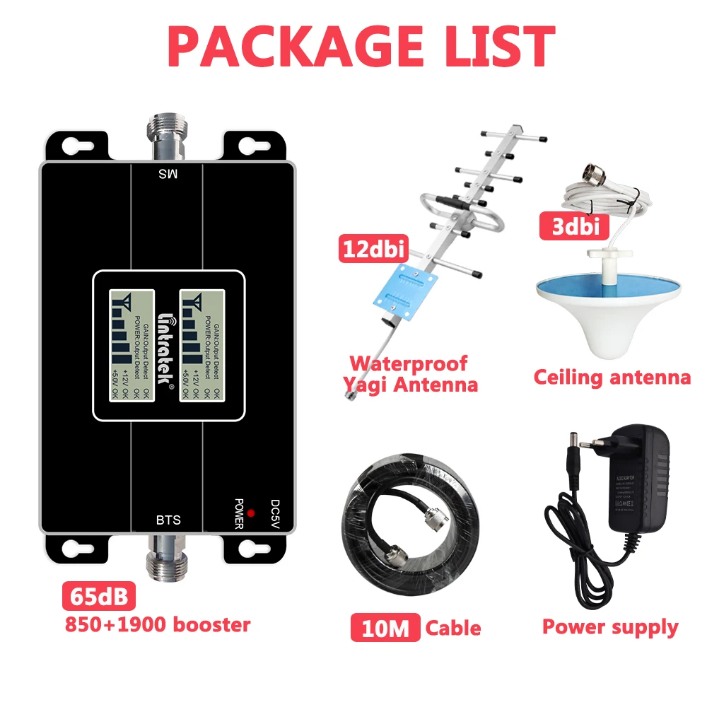 Lintratek 850 CDMA B5 усилитель сигнала 1900 2G 3G 850 МГц 1900 МГц сетевой сотовый усилитель CDMA PCS двухдиапазонный Ретранслятор Полный комплект