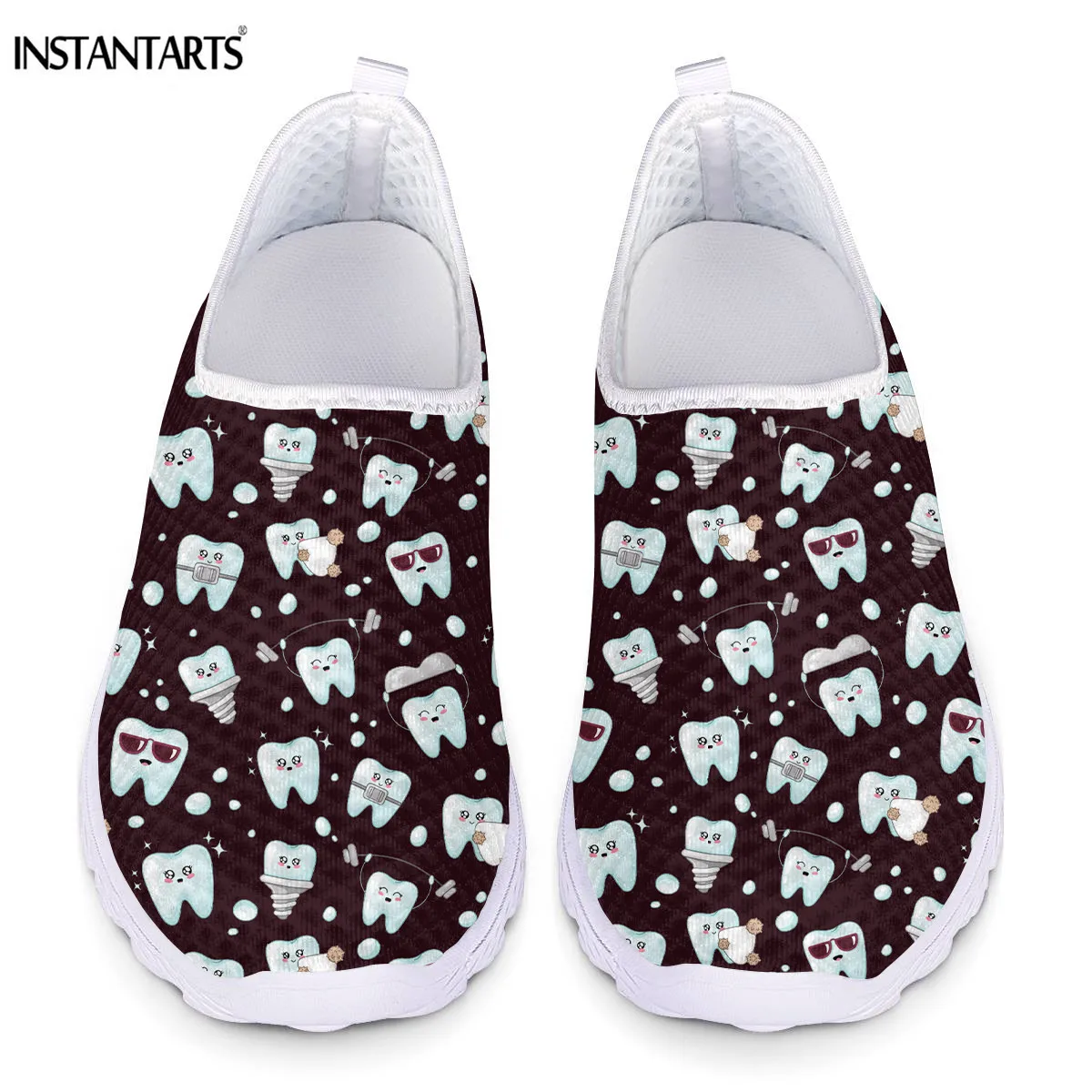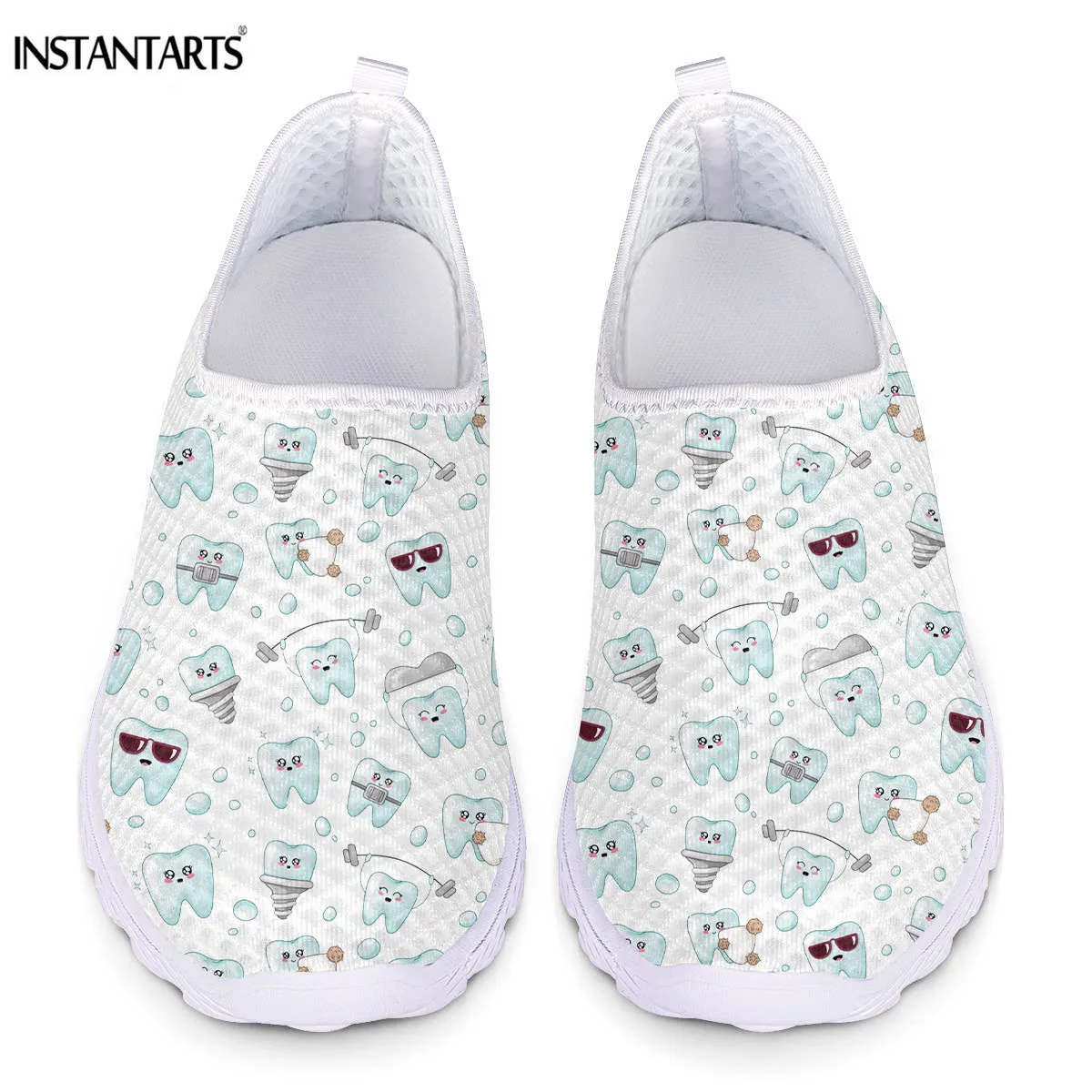Женские сетчатые кроссовки INSTANTARTS, Летние слипоны без застежек, с рисунком зубов, на плоской подошве