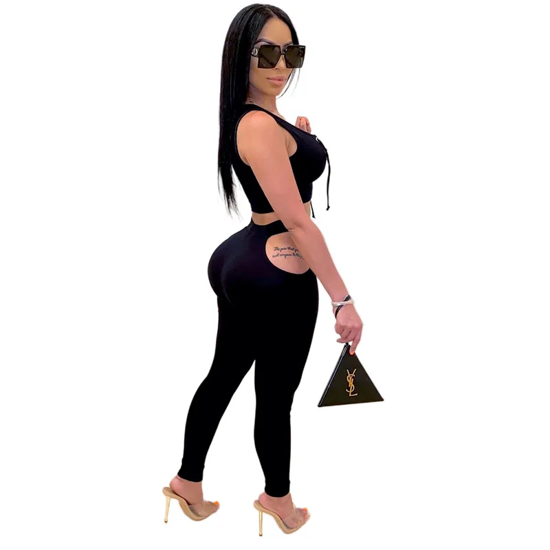 Женский костюм-двойка Adogirl, комплект из двух предметов, жилет на шнуровке, укороченный топ на бретелях, брюки-карандаш с дырками, сексуальный домашний спортивный костюм