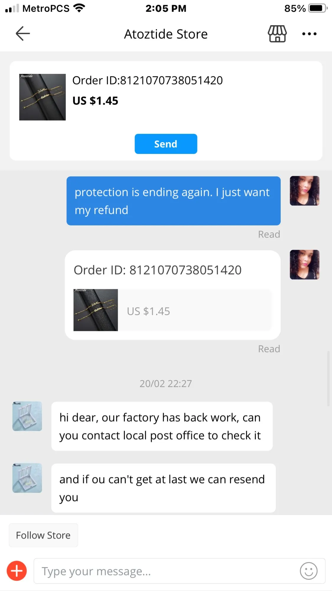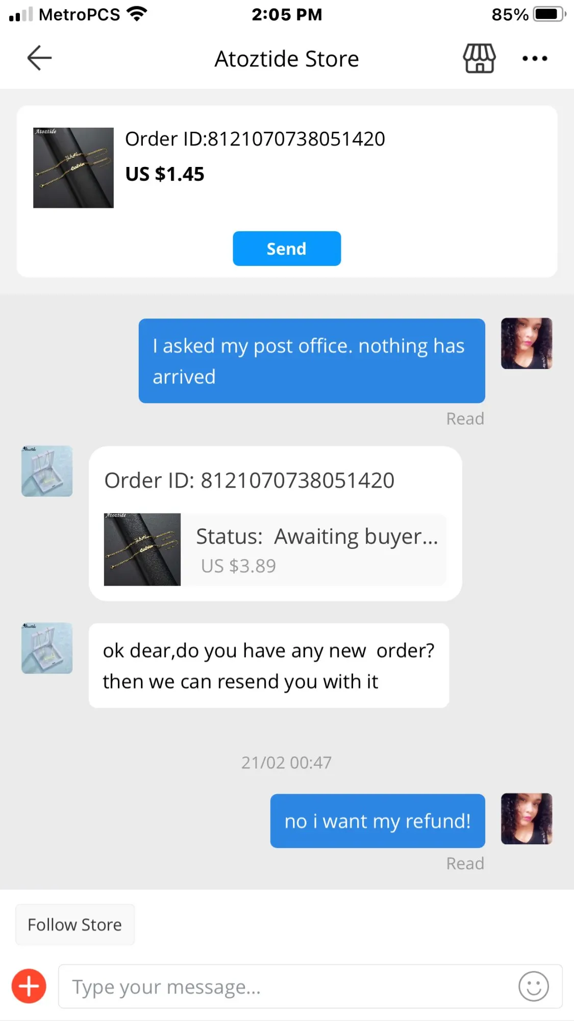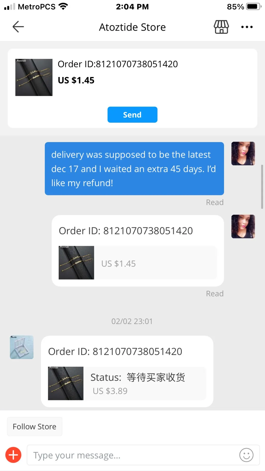 Худший продавец, с которым я связался! Купил на 11/13/2020, и это 03/03/2021, и я не получил это! Не было бы проблемой, если бы продавец работал со мной для возврата денег, но продавец только хотел повторно отправить товар, но мне бы пришлось купить что-то новое, чтобы они могли отправить оба товары вне дома! Продолжили спрашивать вместо этого возврат, и они сказали, что они могут только переделать, поэтому я сказал им, что открываю спор. Они никогда не принимались в споре. Aliexpress должен был войти! Этот продавец очень раздражает. Я вижу, что люди получили свои вещи, но они не работают с людьми, которые не получили свой товар! Самое лучшее обслуживание клиентов!
