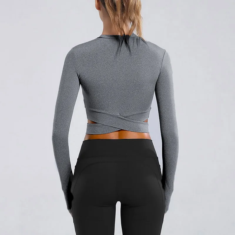 Женские футболки для йоги, сексуальные, с длинным рукавом, для бега...