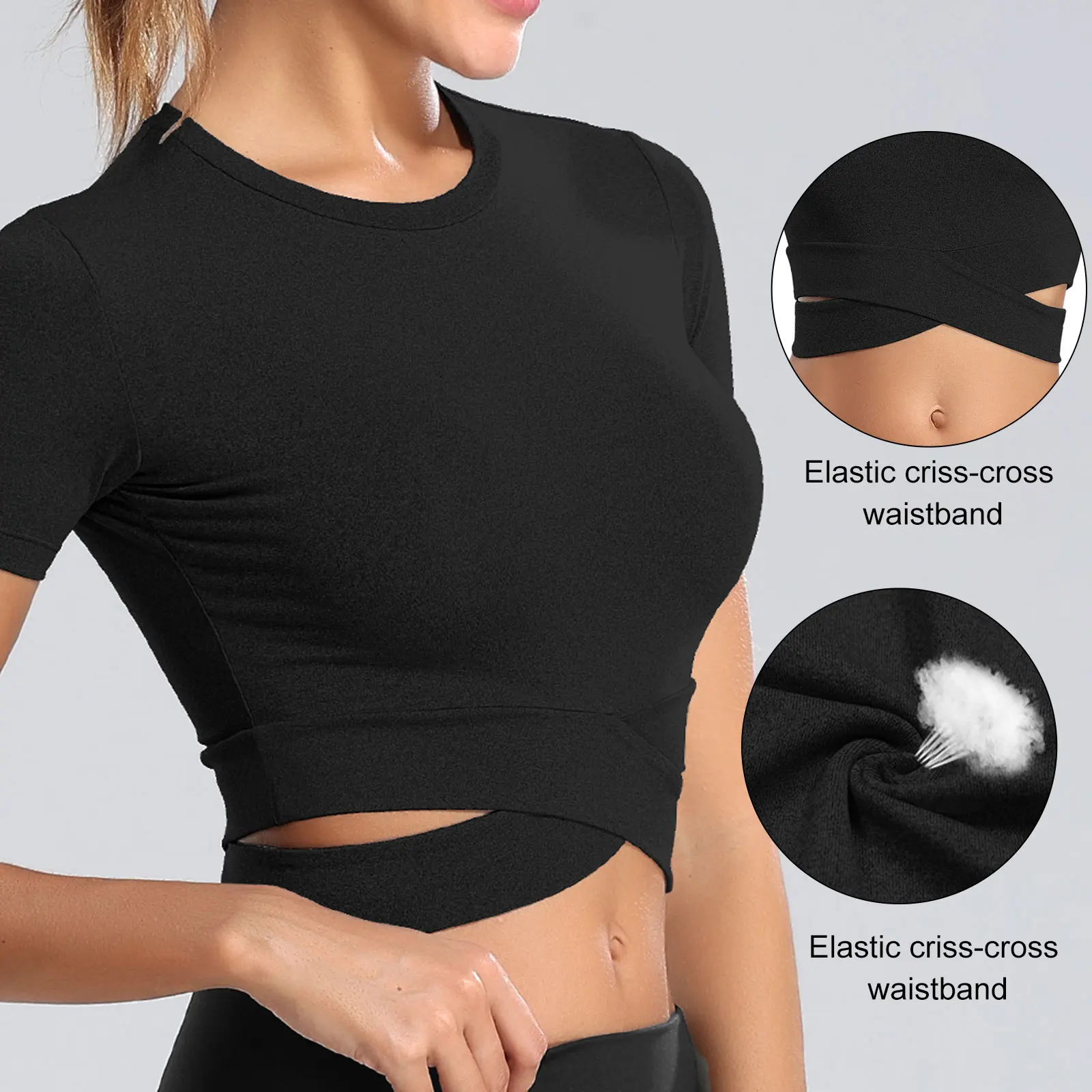 Жесткие Йога футболки женские короткий рукав укороченные для спортз...