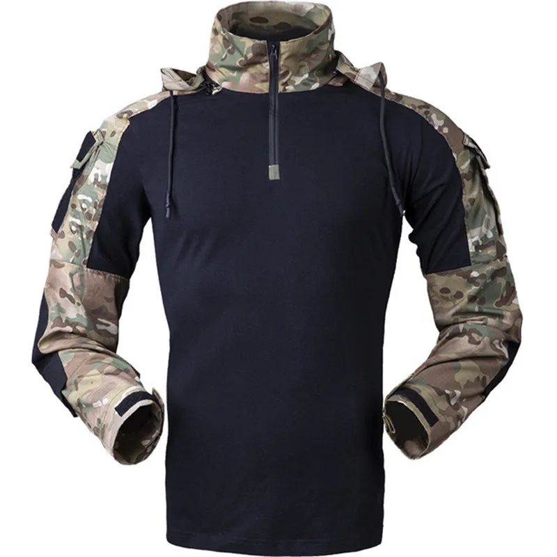 Рубашка мужская камуфляжная, с капюшоном, в стиле милитари