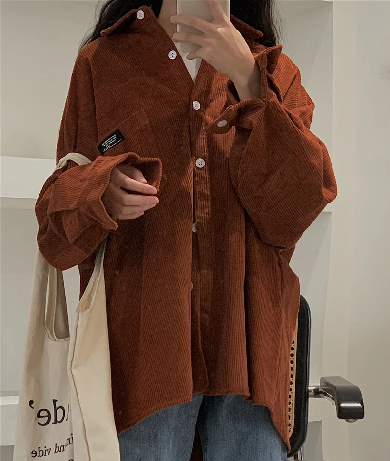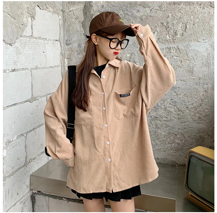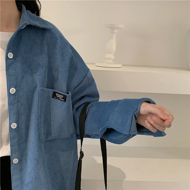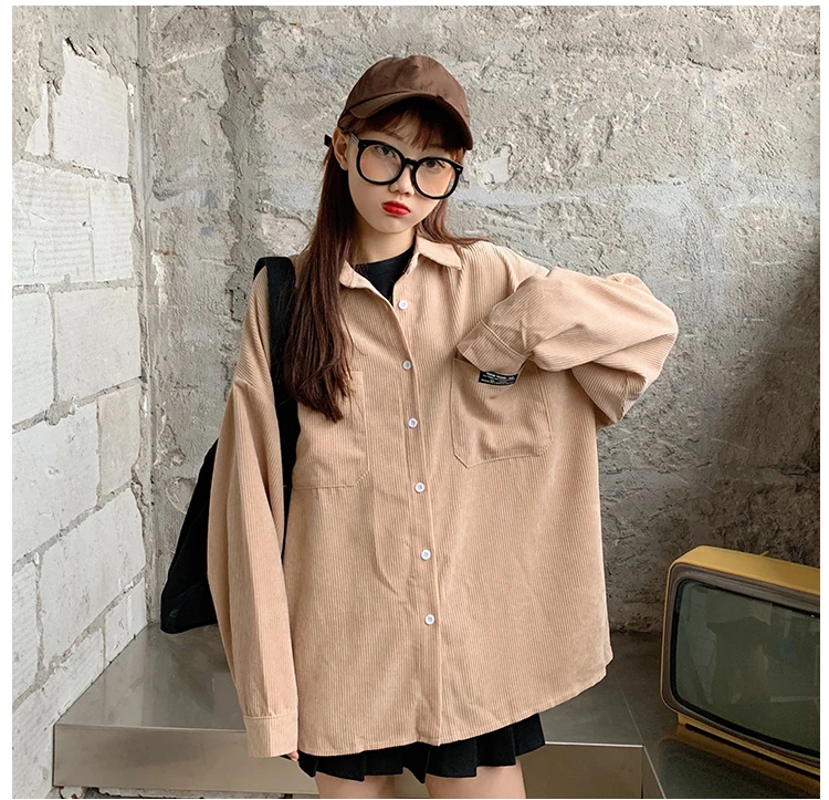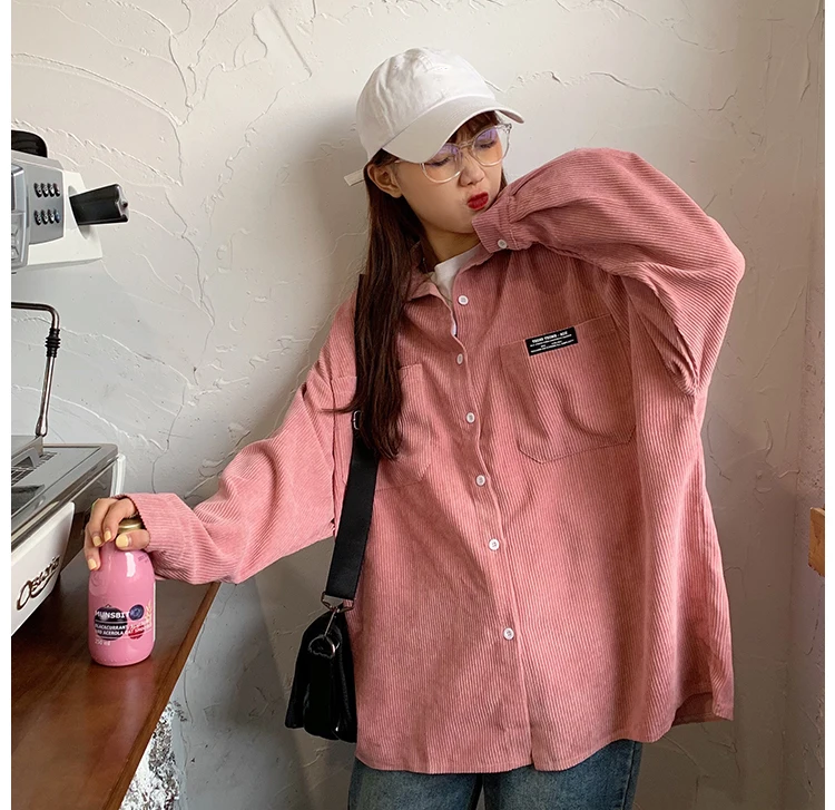 Женская Вельветовая рубашка, однобортная рубашка с отложным воротником, длинными рукавами и карманами, свободные топы T06117K, весна-осень 2020