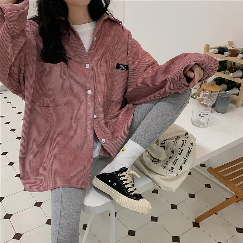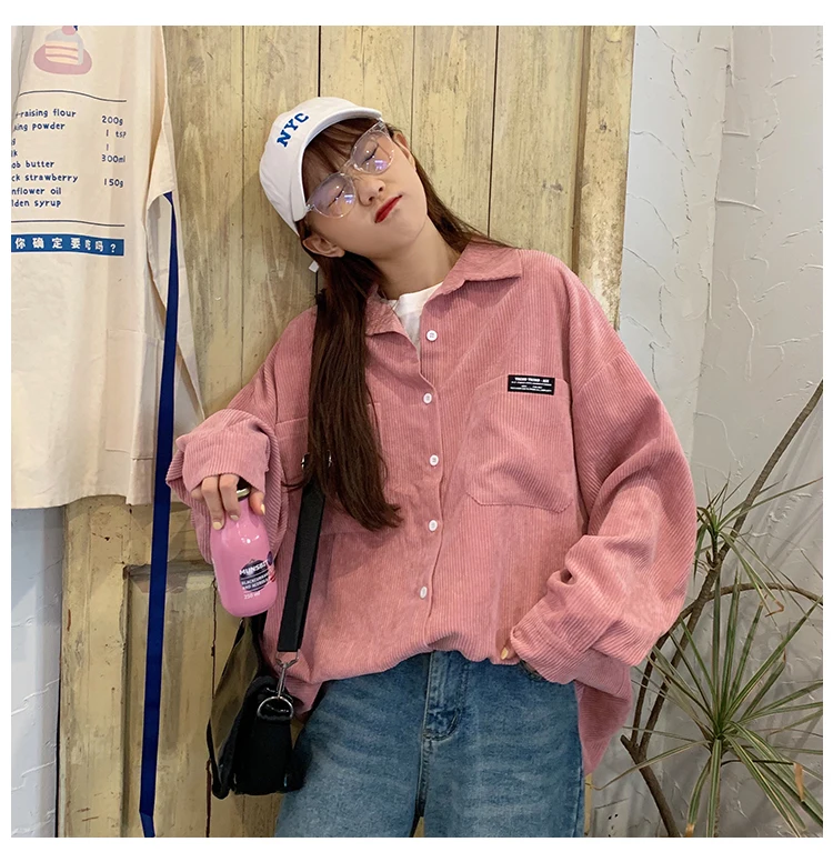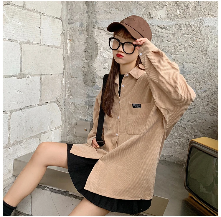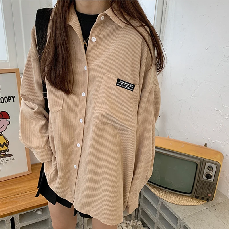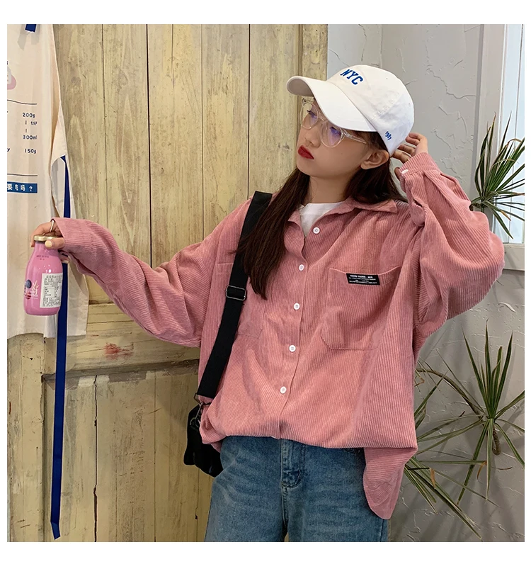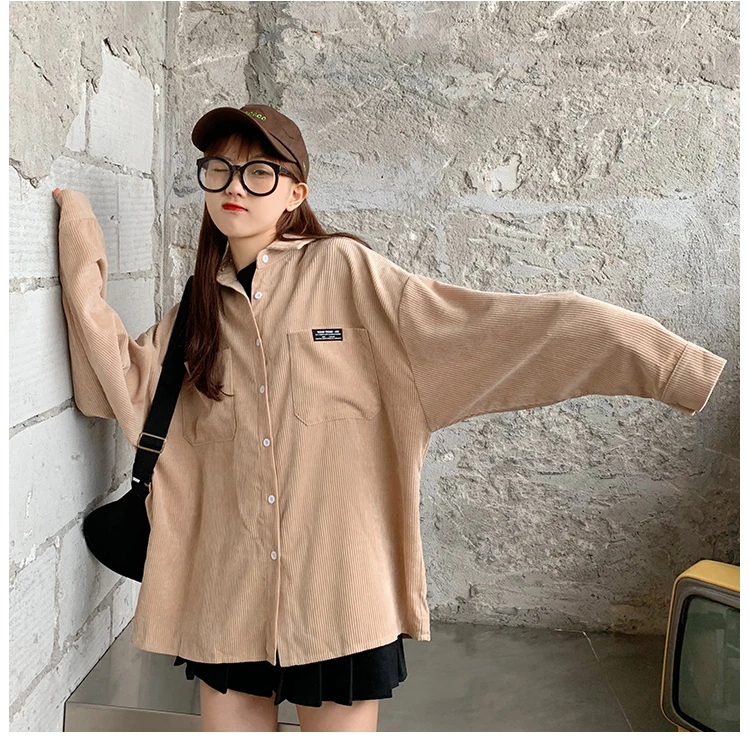 Женская Вельветовая рубашка, однобортная рубашка с отложным воротником, длинными рукавами и карманами, свободные топы T06117K, весна-осень 2020