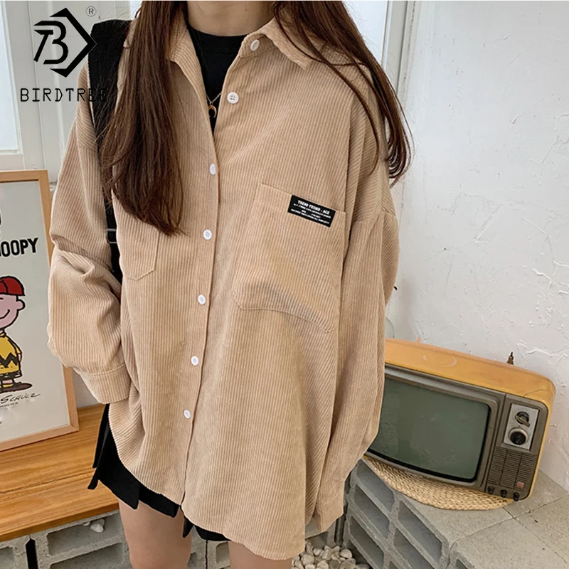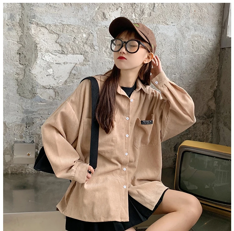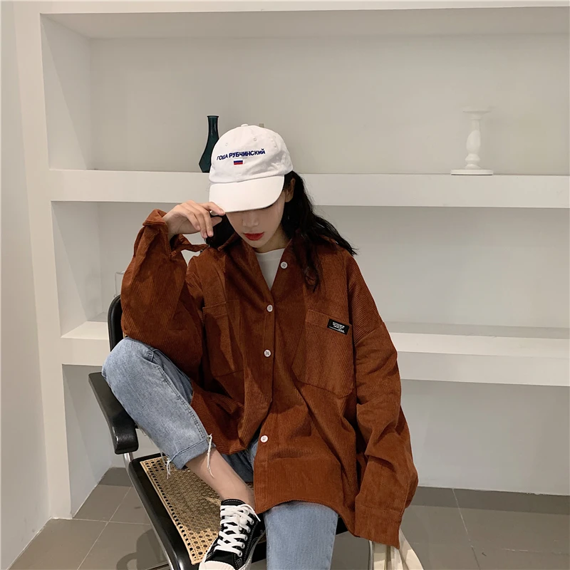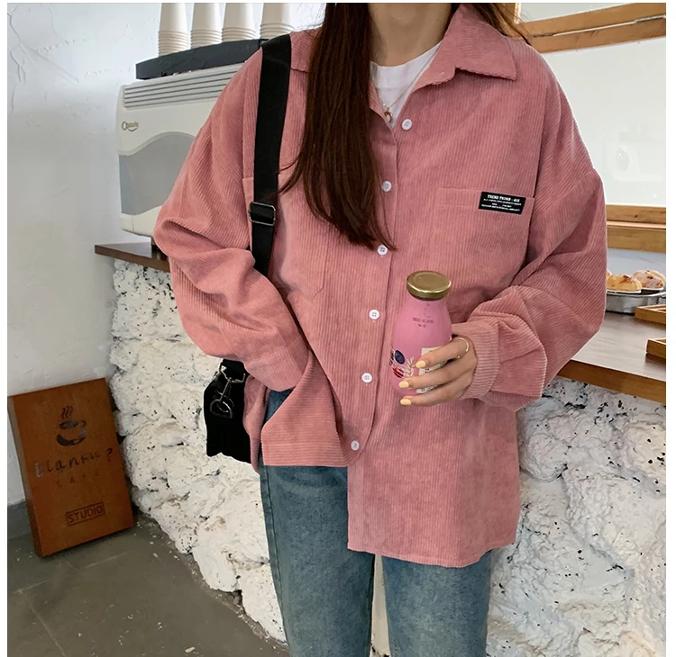 Женская Вельветовая рубашка, однобортная Свободная рубашка с отложным воротником, длинными рукавами и карманами, весна-осень 2020, T06117K