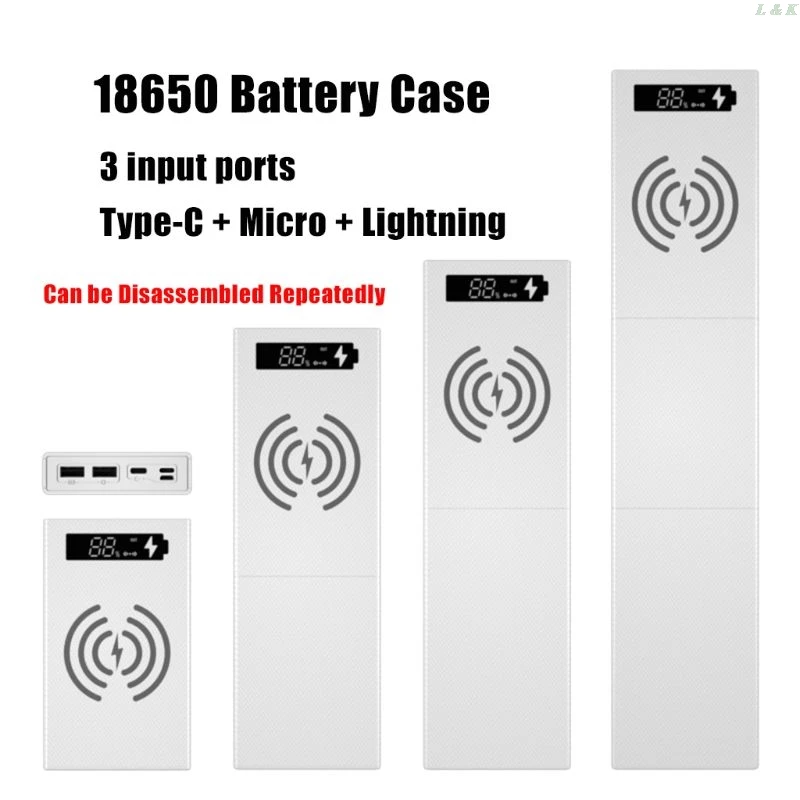 Чехол для аккумулятора 18650 с ЖК-дисплеем и беспроводной зарядкой,...