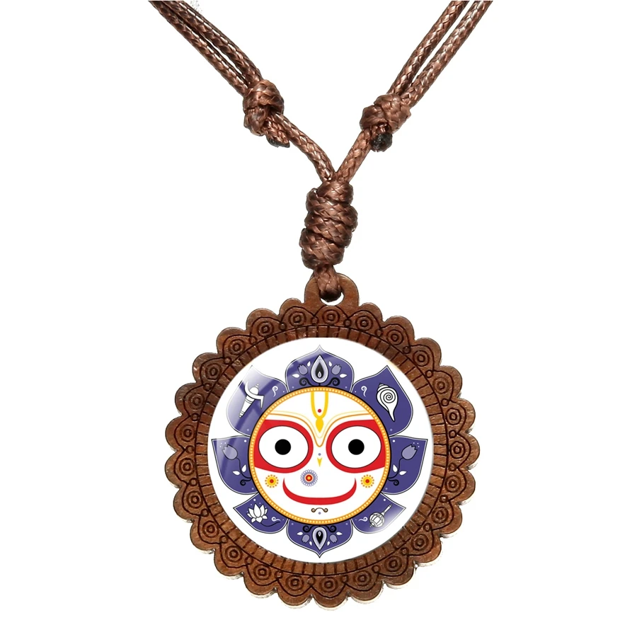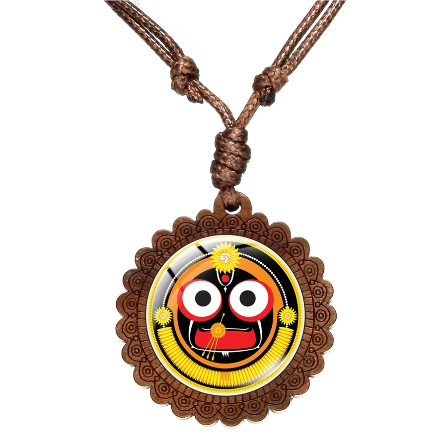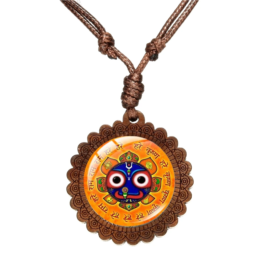 Ожерелье из аниме Лотос, Пури, индийский, индуийский Бог, деревянное ожерелье ручной работы, стеклянный кабошон, подарки для лучших друзей