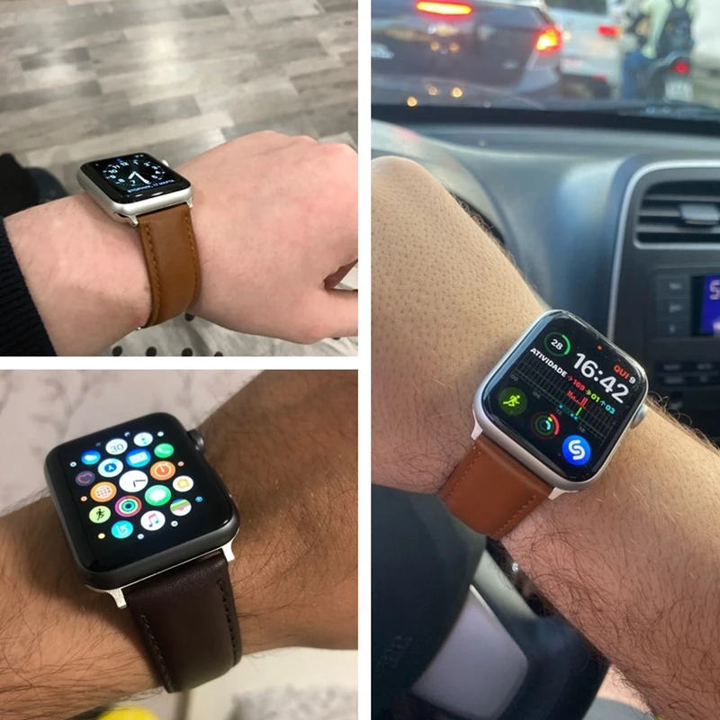 Ремешок из телячьей кожи для iwatch 7 2 3 4 5 6, мягкий сменный Браслет для наручных часов Apple Watch 38 мм 40 мм 41 мм 42 мм 44 мм 45 мм