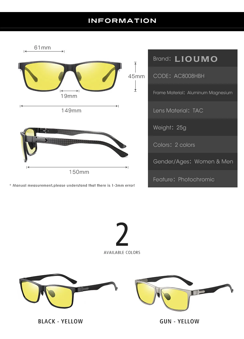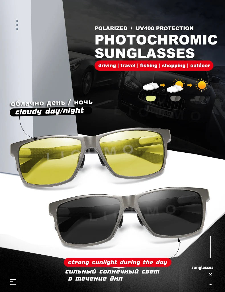 Очки солнцезащитные LIOUMO мужскиеженские фотохромные, поляризационные, в алюминиево-магниевой оправе