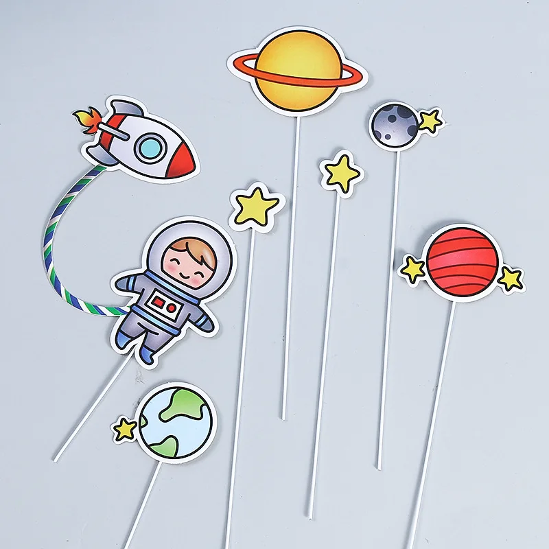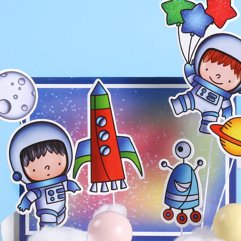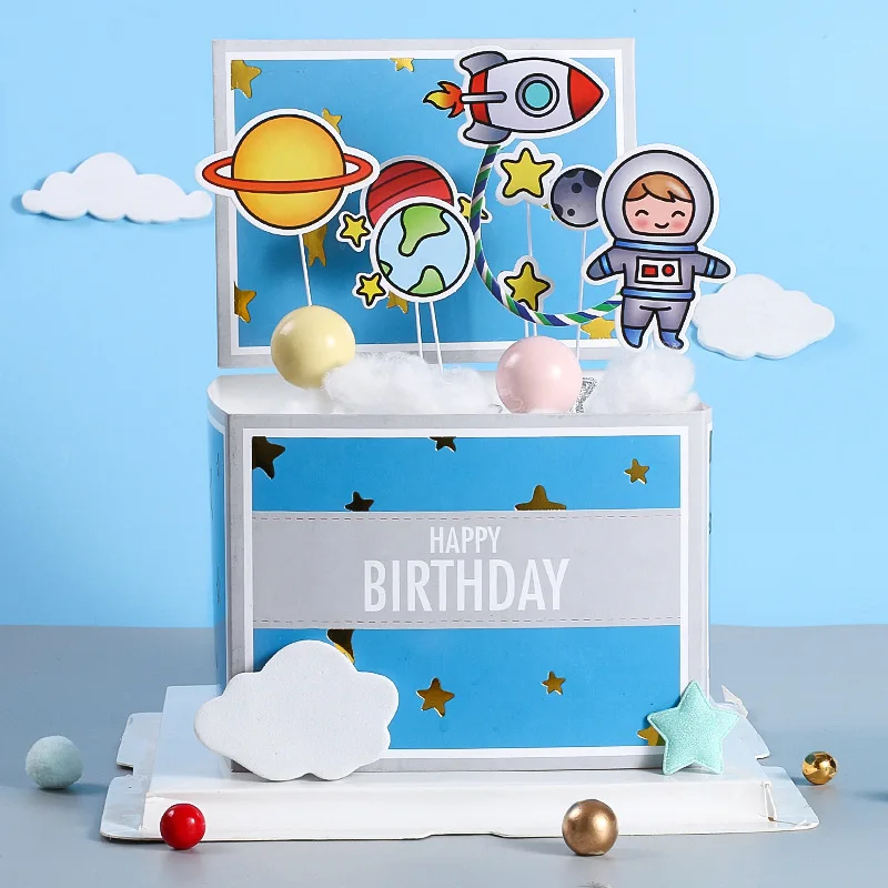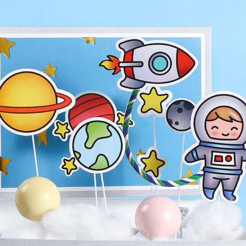 Креативное украшение для торта, космонавт, космический корабль, счастливая фотография для детского дня рождения, украшение для торта