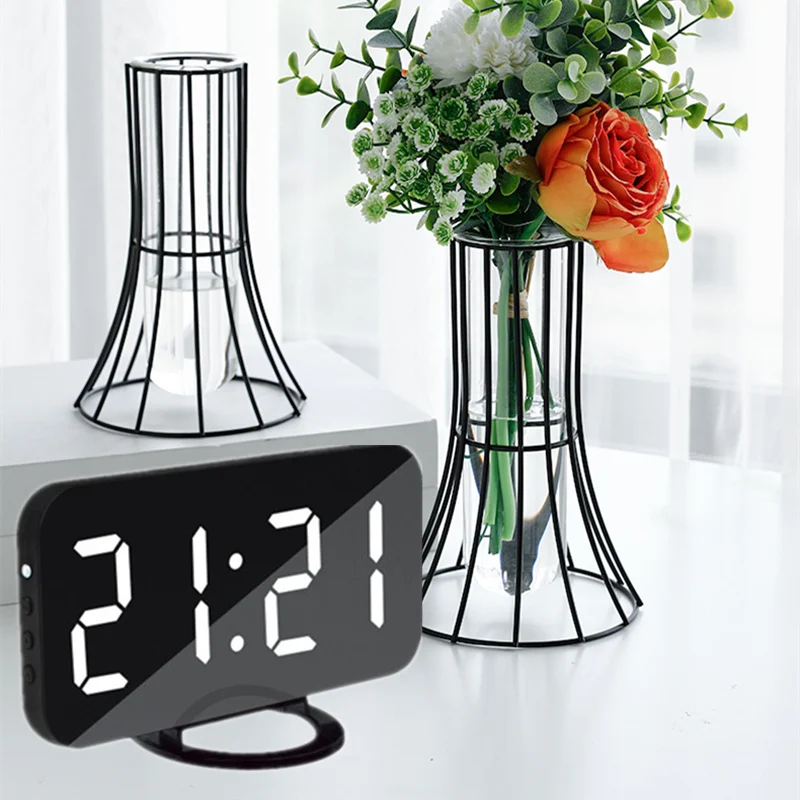 Современный дизайн, цифровой Повтор, Настольный будильник с зарядкой телефона, USB порты, светодиодный, зеркальный, офисные, настольные часы, часы для спальни