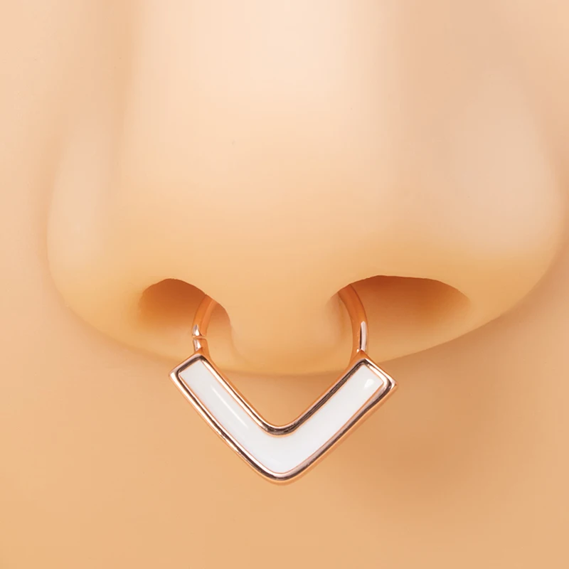 Медное кольцо для носа, перегородки, V-образной формы, уха гвоздик для Козелка, серьги, Надеваемые На ушной хрящ, спираль, бровей, губ, пирсинг, украшения для тела 18 г, 1 шт.