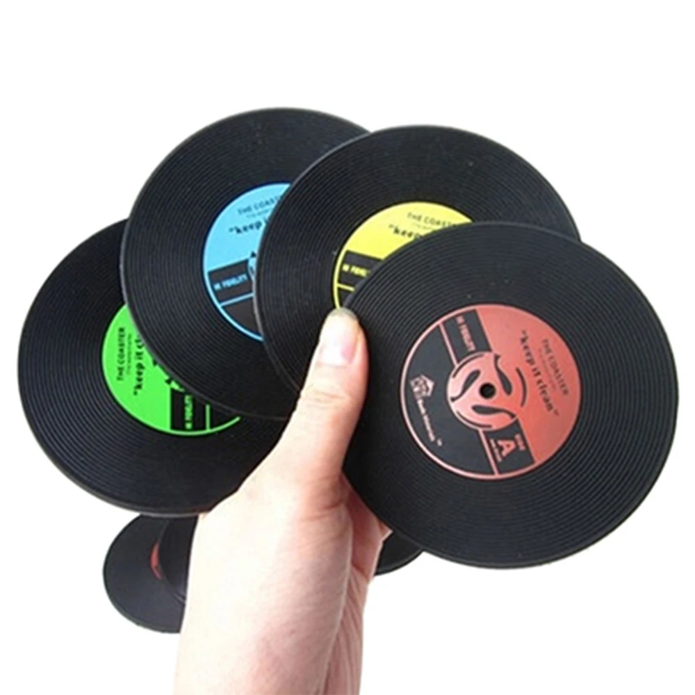 Изготовлен из пищевого ПВХ, нетоксичный, мягкий и гибкий. Симпатичные подставки для CD защищают поверхность стола от повреждений, кладя на стол горячие или холодные напитки. Идеальный размер для больших и маленьких чашек, кружек, стаканов и бутылок. Нескользящий дизайн --- не беспокойтесь о перемещении подставок. Рифленый рисунок удерживает жидкость для предотвращения утечки. Украсьте свой журнальный столик этими стильными подставками для виниловых пластинок в стиле ретро. Характеристики Товара: 1 х Подставка для напитков