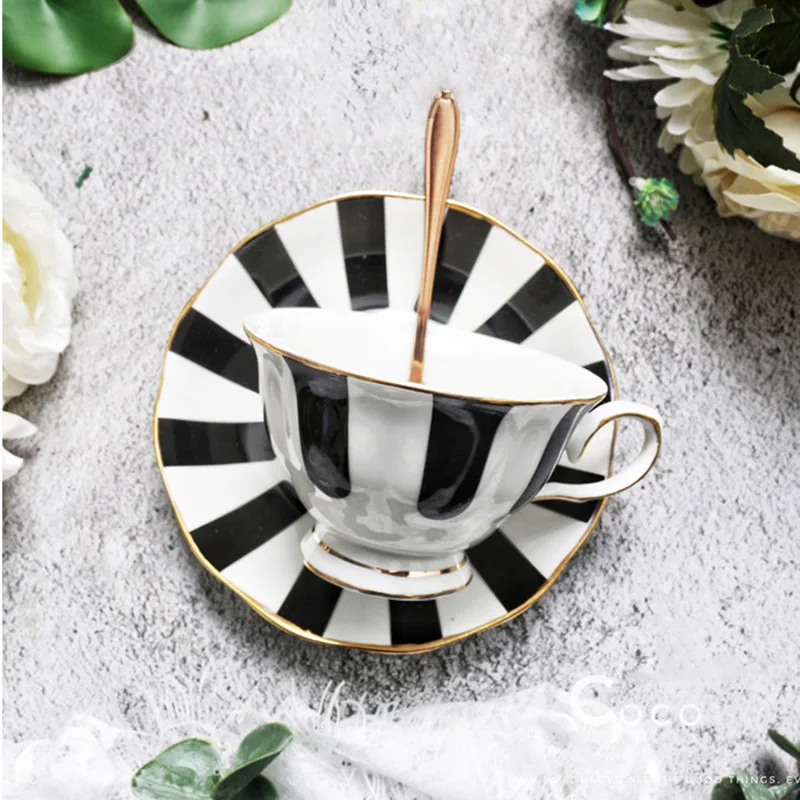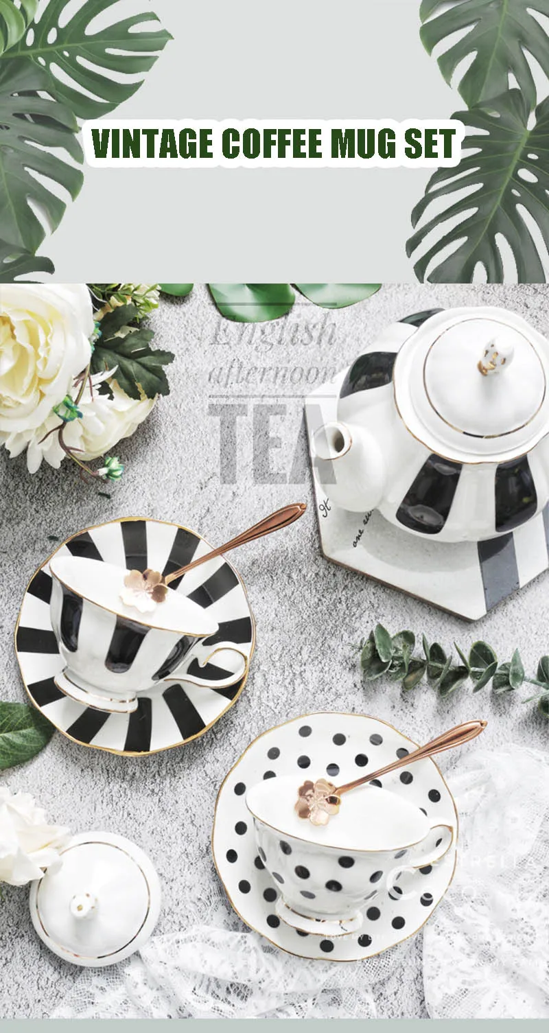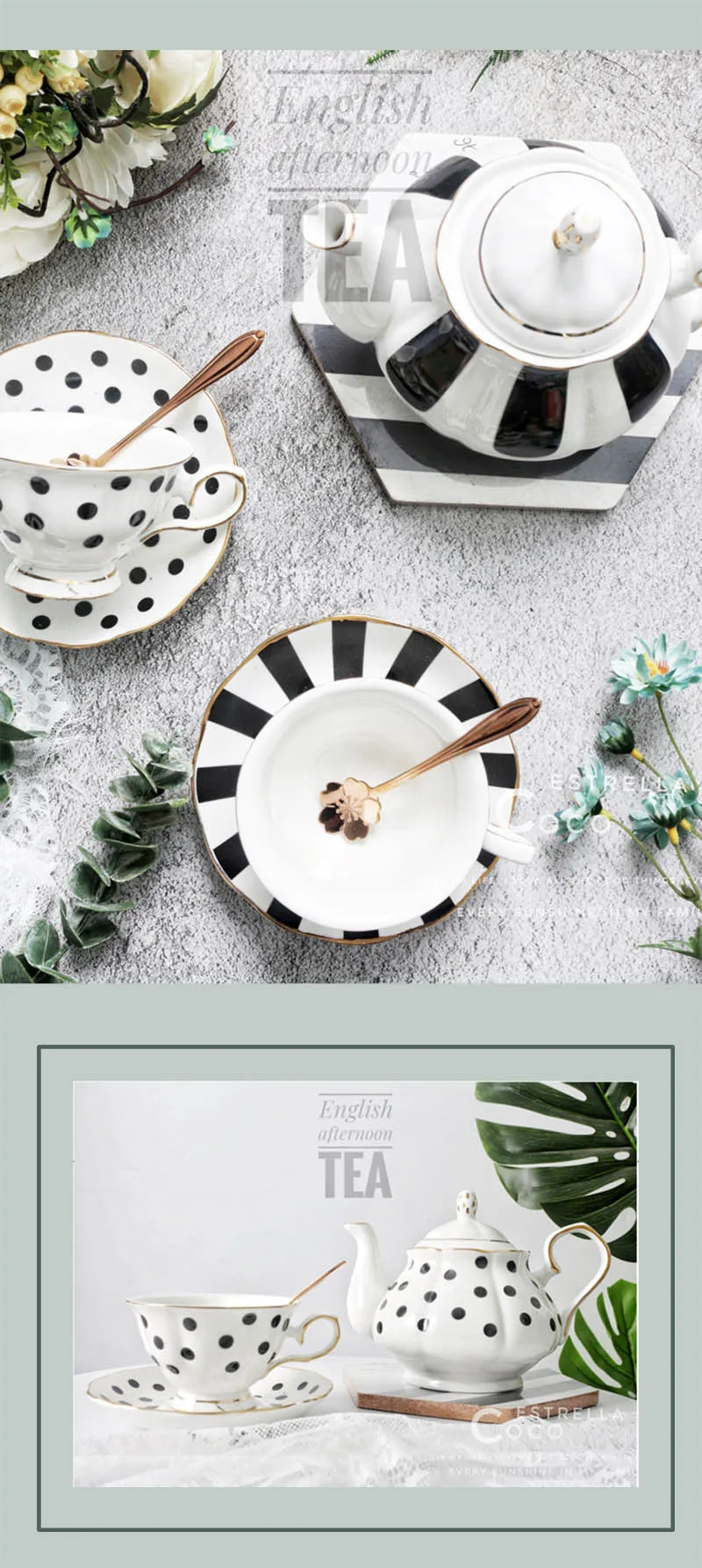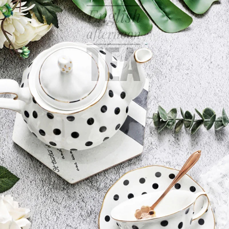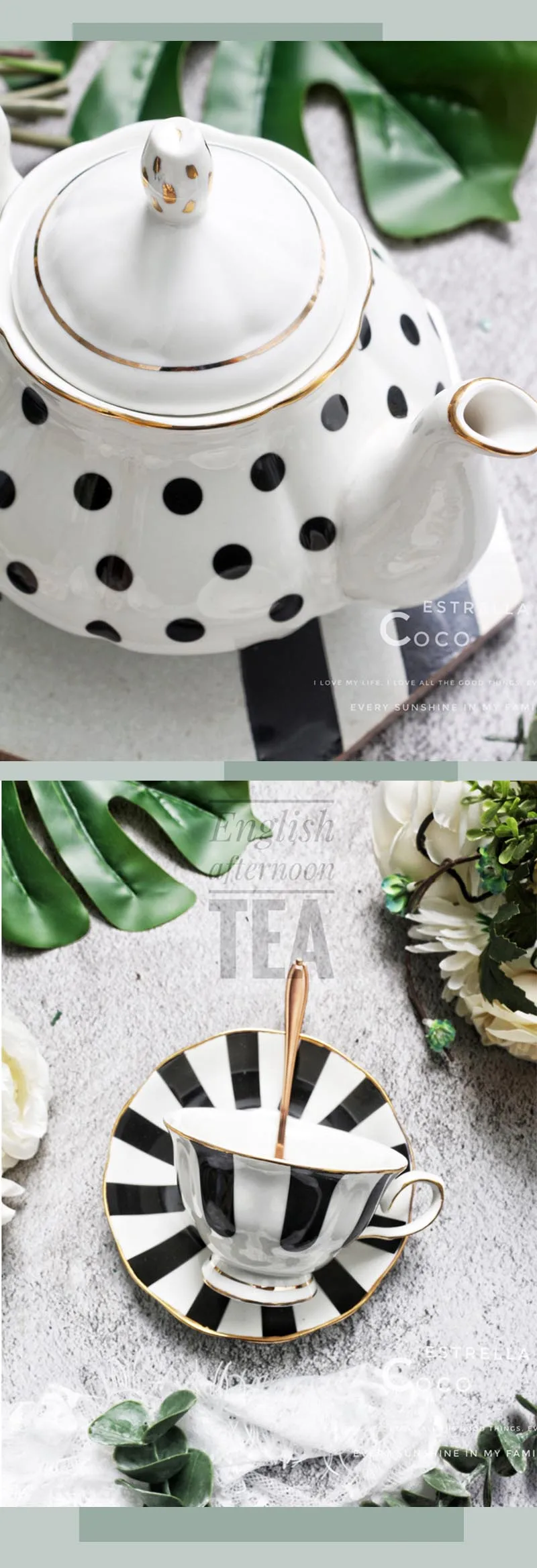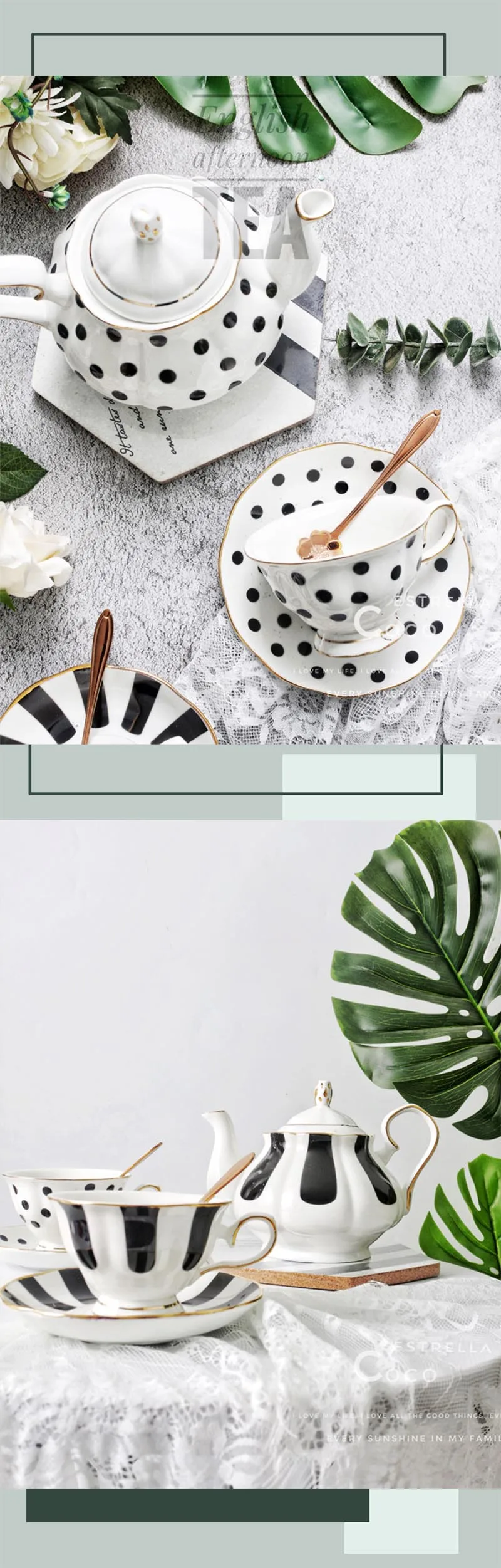 Керамическая кофейная чашка, набор посуды для послеобеденного чая, кружка с золотым ободком для молока, чайник для молока, черный полосатый чайник в горошек, чайный горшок, блюдо для десерта