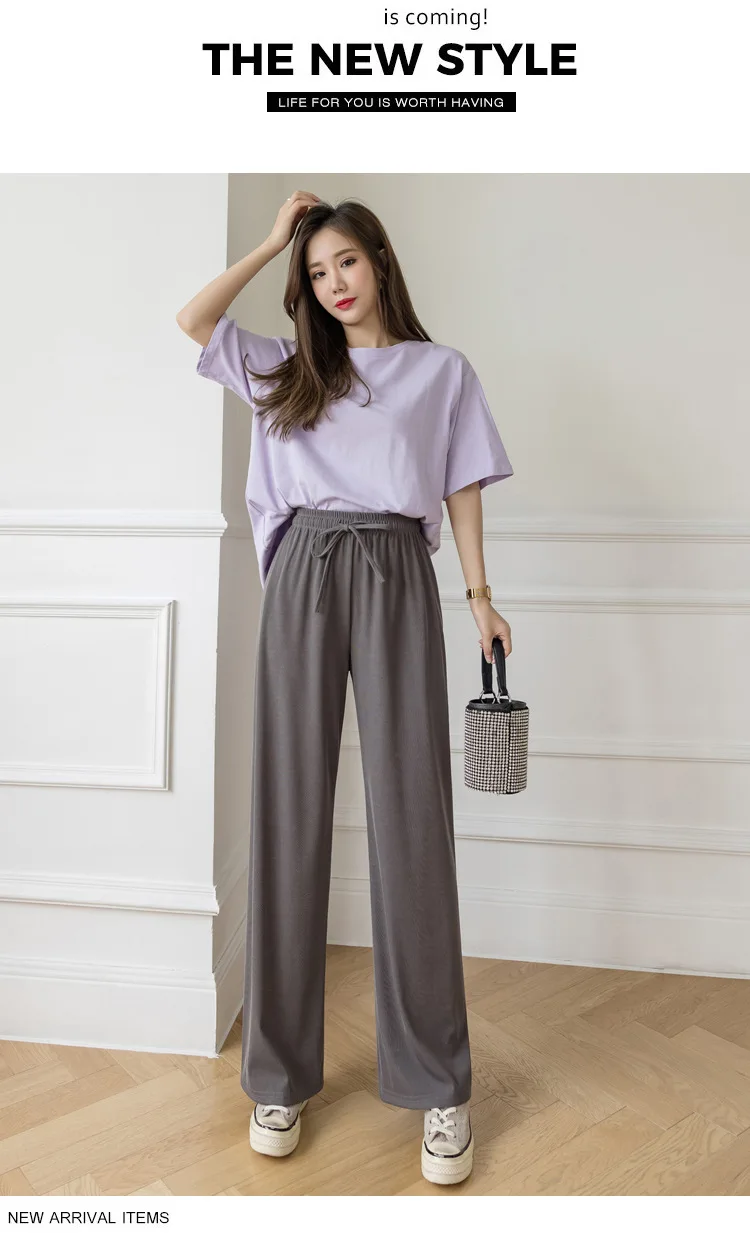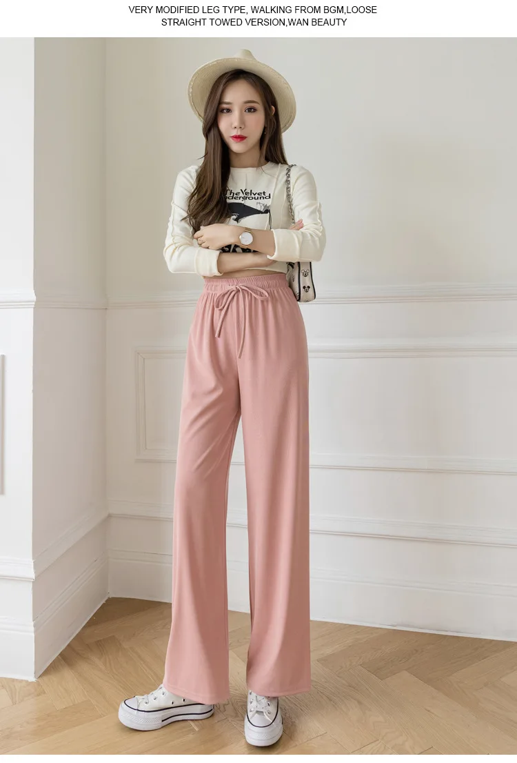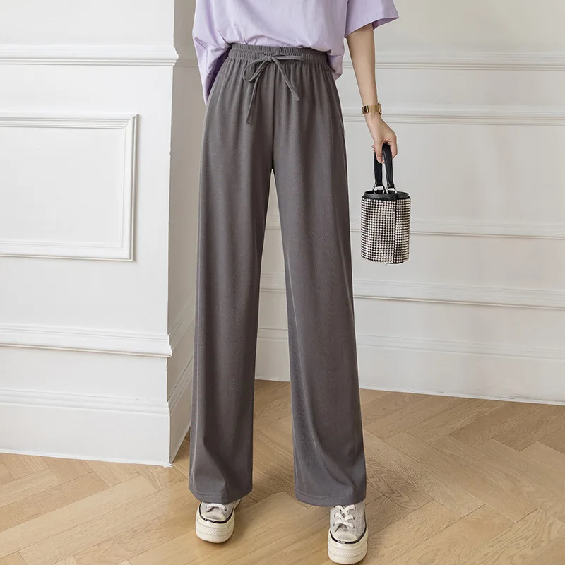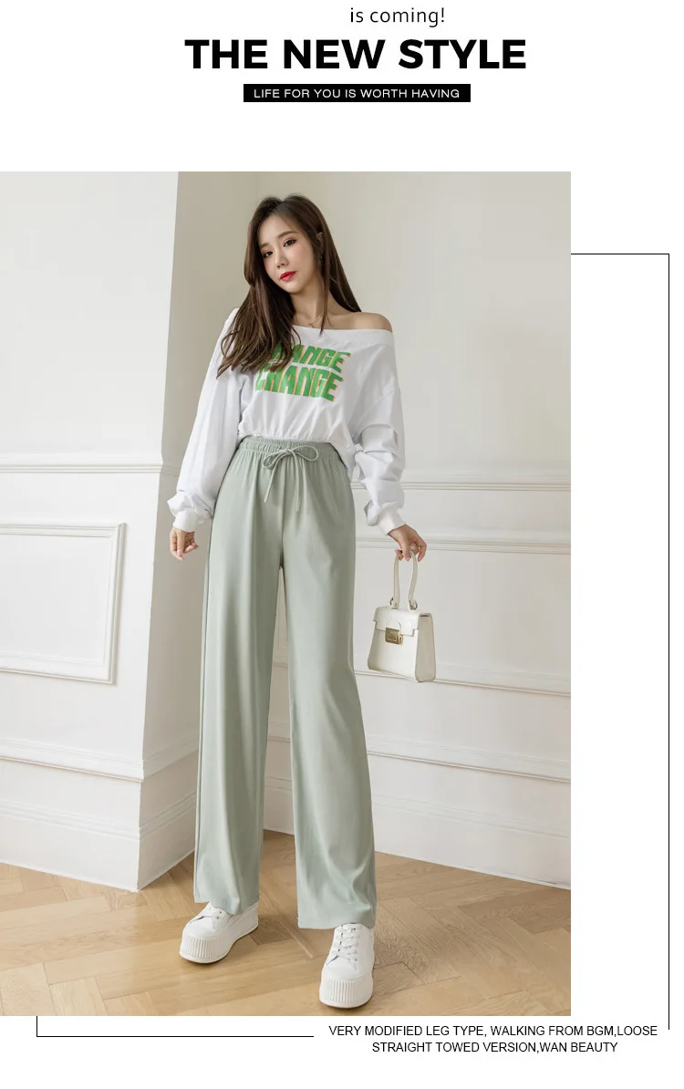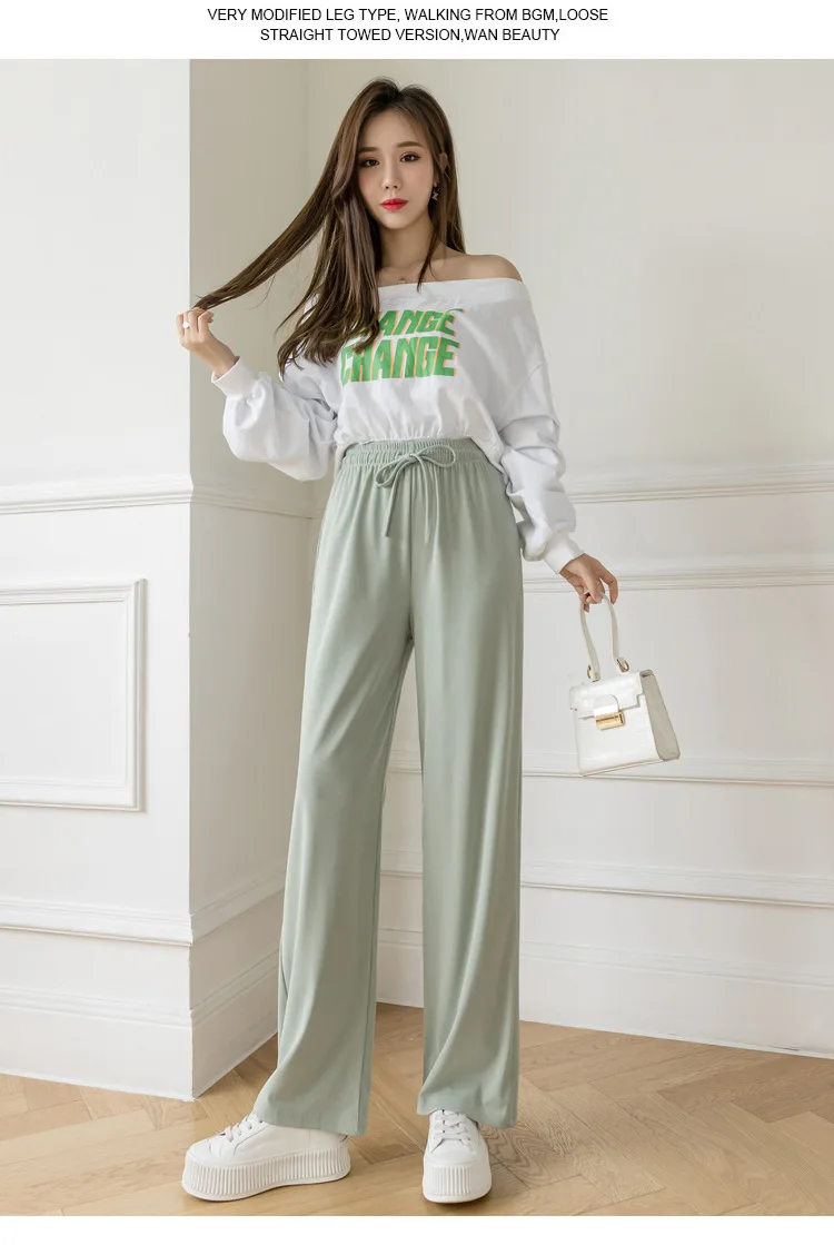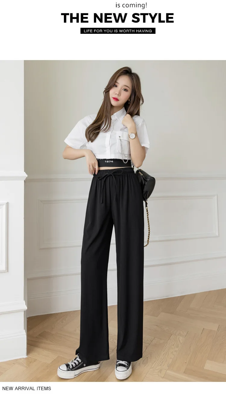 Брюки женские из вискозы с широкими штанинами, повседневные Модные дышащие брюки в полоску, с завышенной талией, из модала, джокер, лето 2021