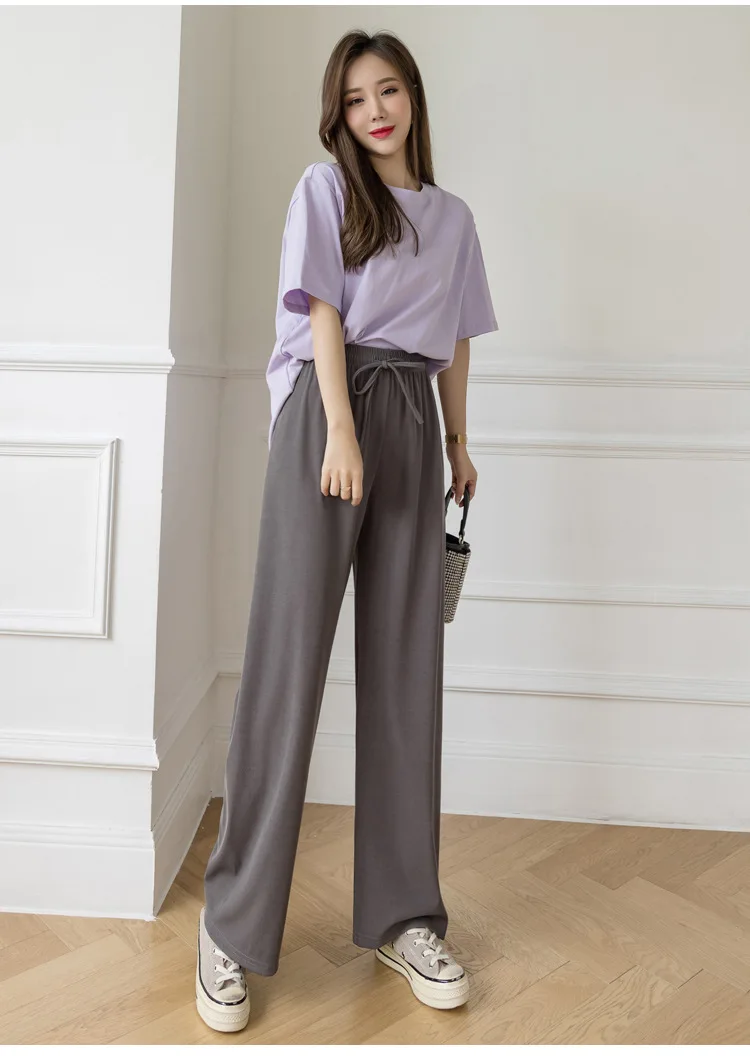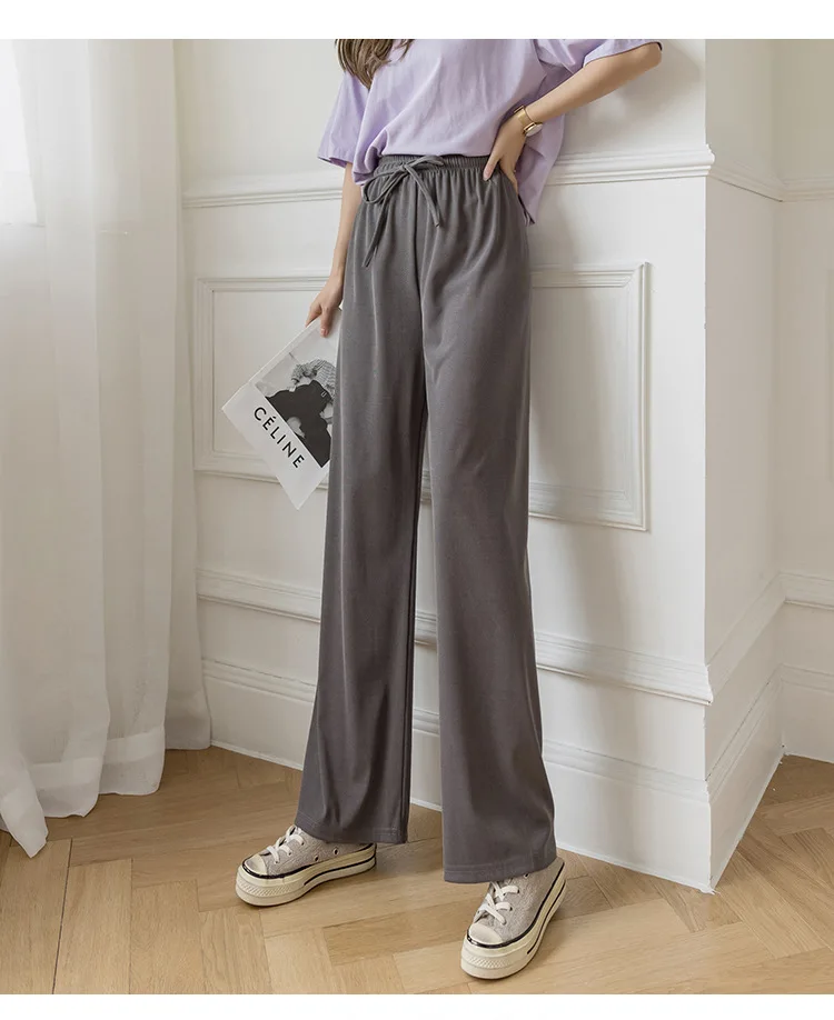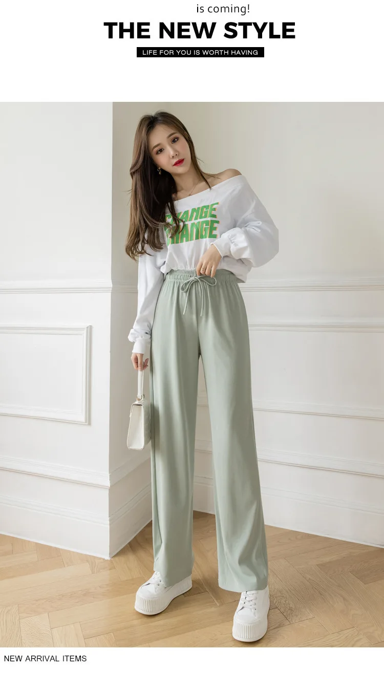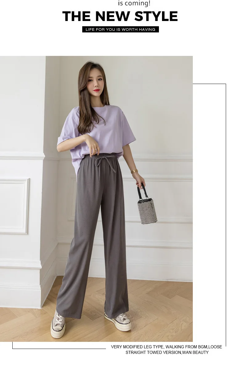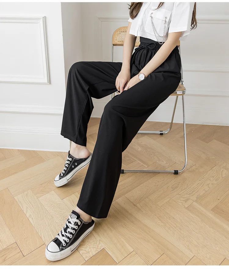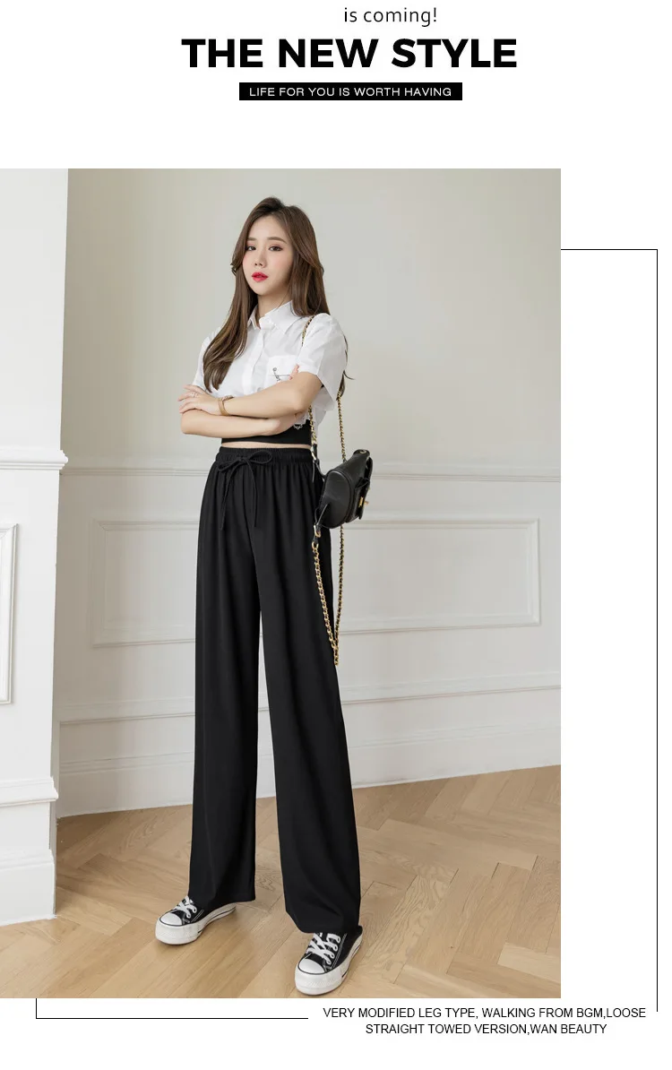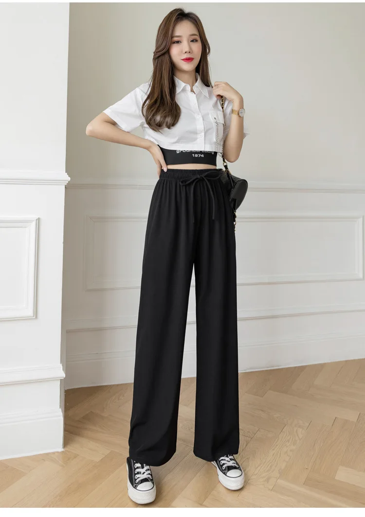 Брюки женские из вискозы с широкими штанинами, повседневные Модные дышащие брюки в полоску, с завышенной талией, из модала, джокер, лето 2021