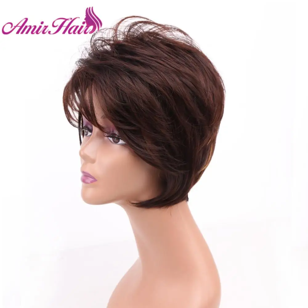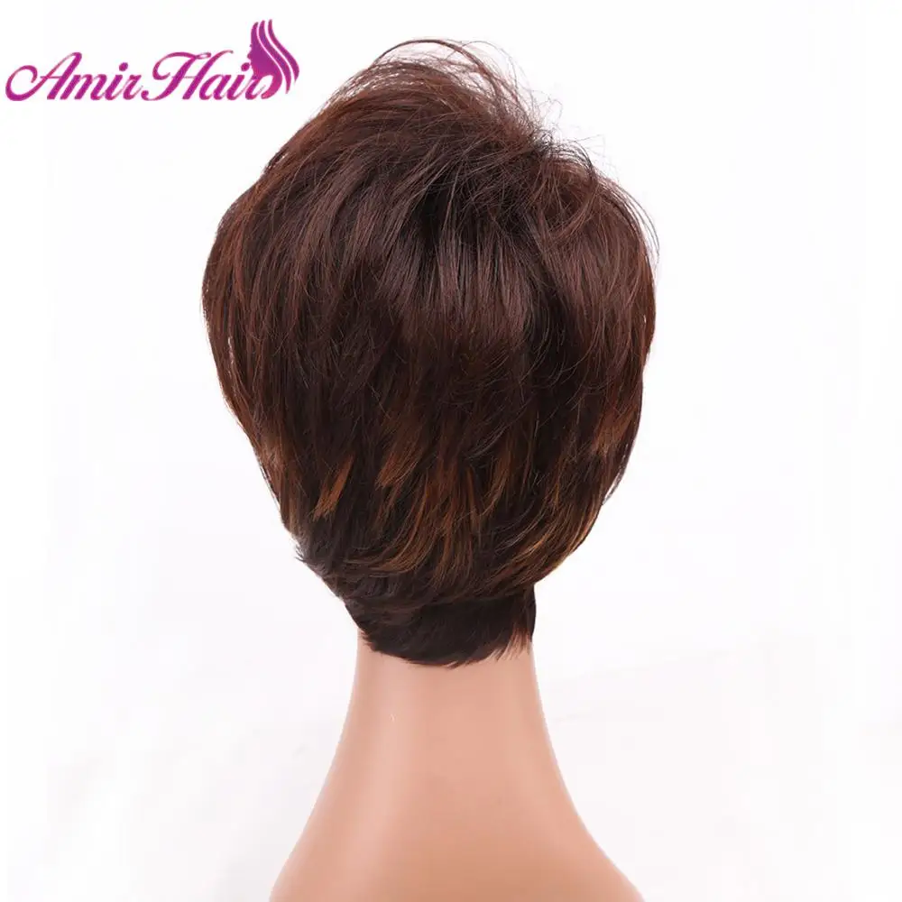 Синтетические короткие прямые волосы Amir, парик Боб, пышные волосы, парики для чернокожих женщин, коричневые парики с эффектом омбре и челкой, парик для косплея