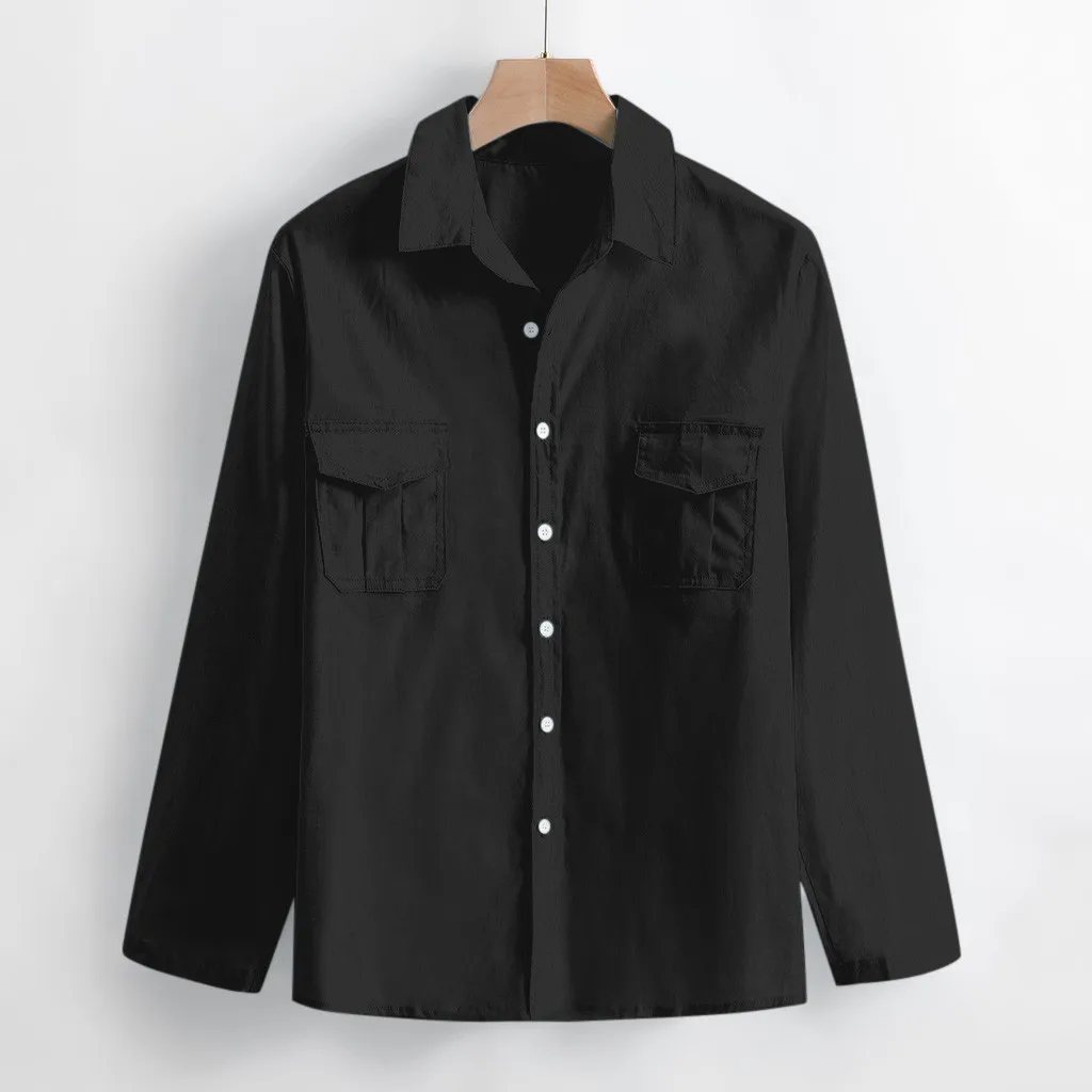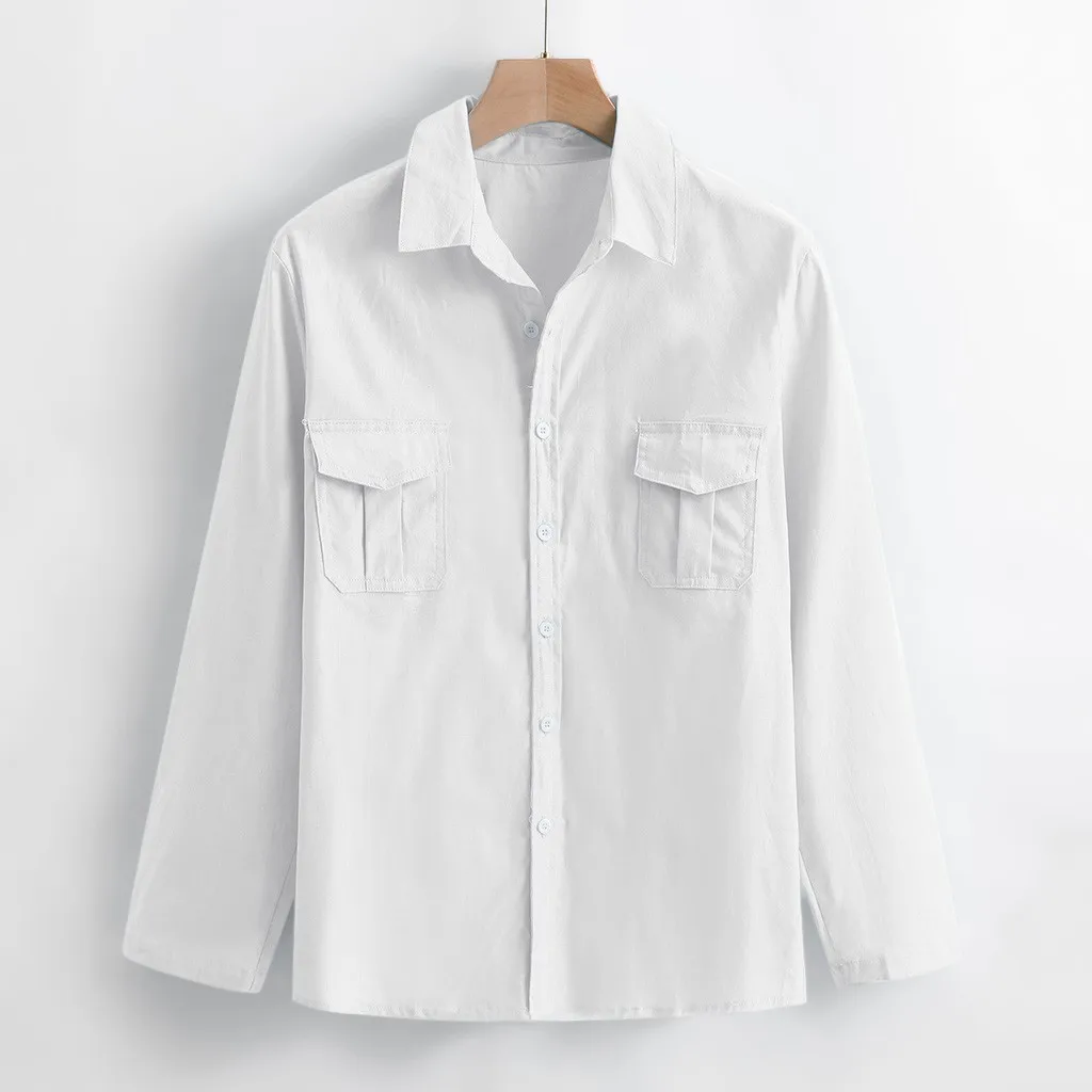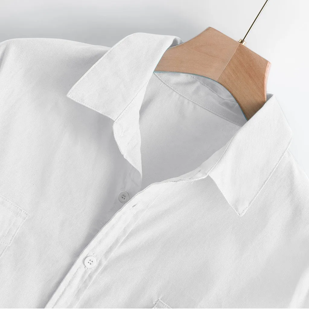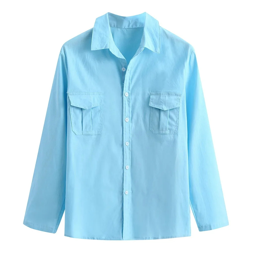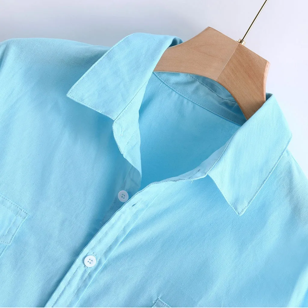 Мужская рубашка из Горячая Распродажа хлопка и льна, однотонная свободная ретро-рубашка с длинными рукавами и карманами, 40 *