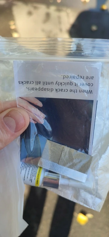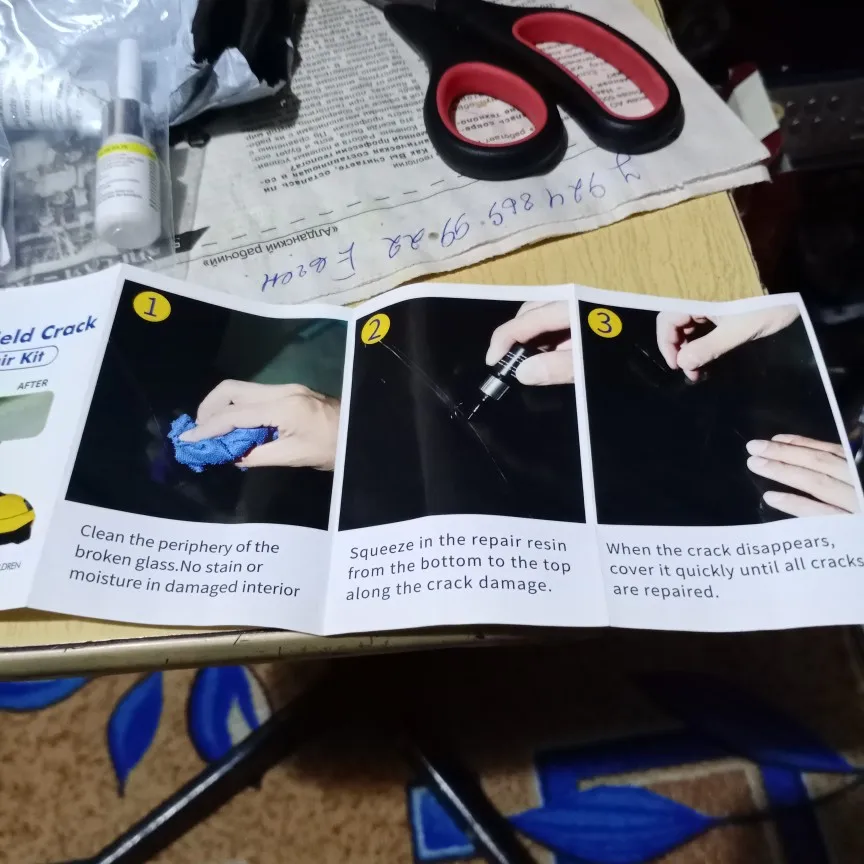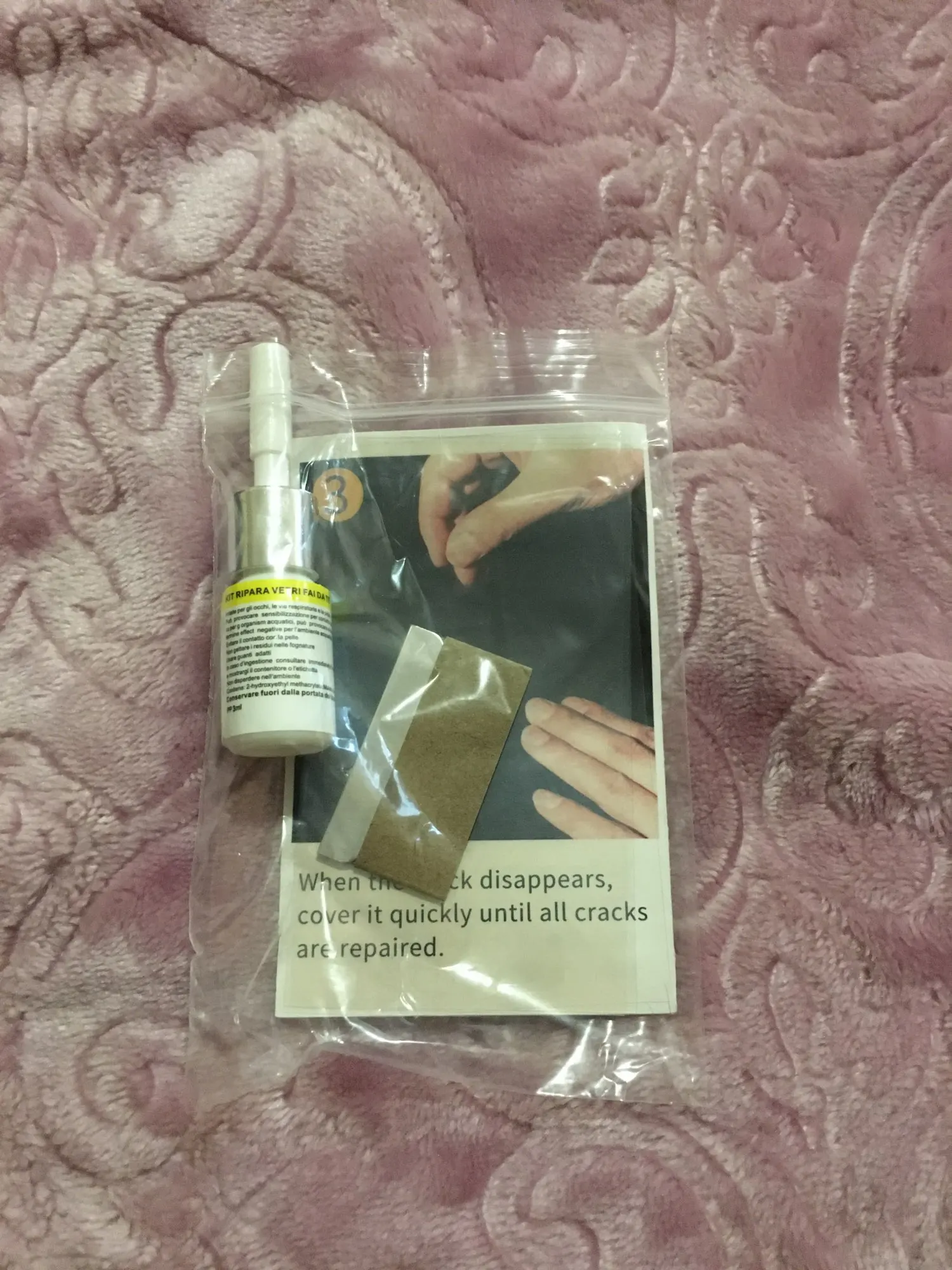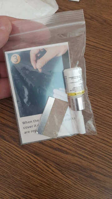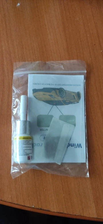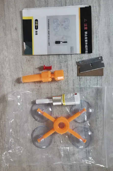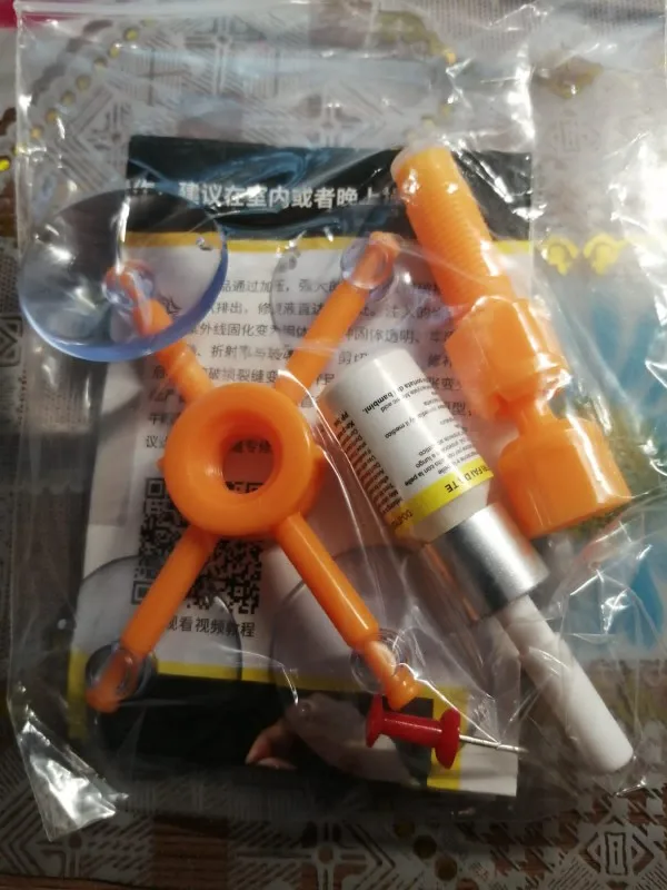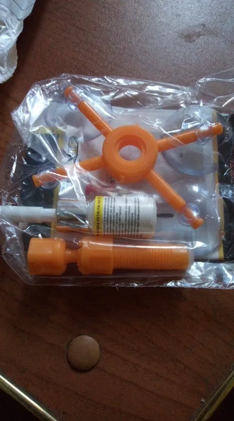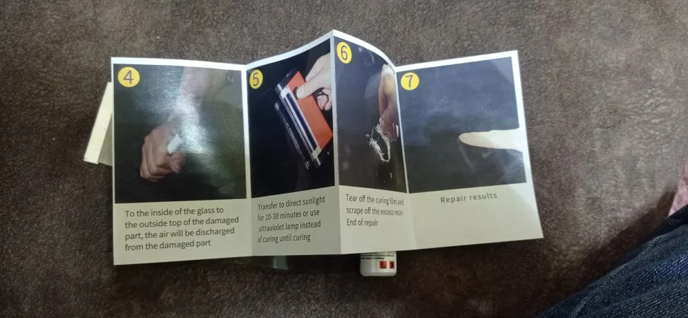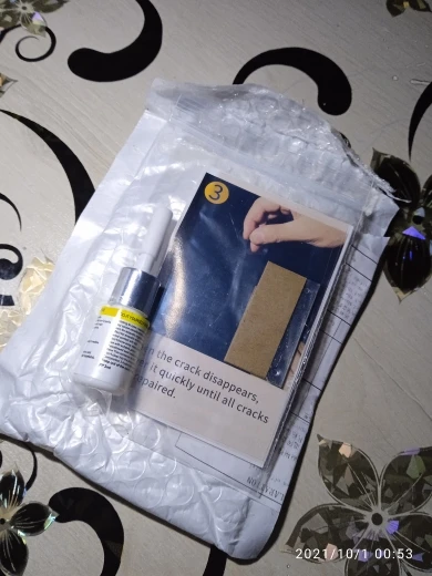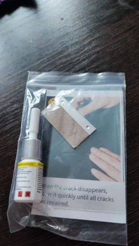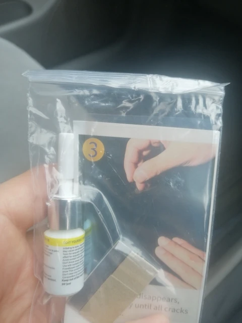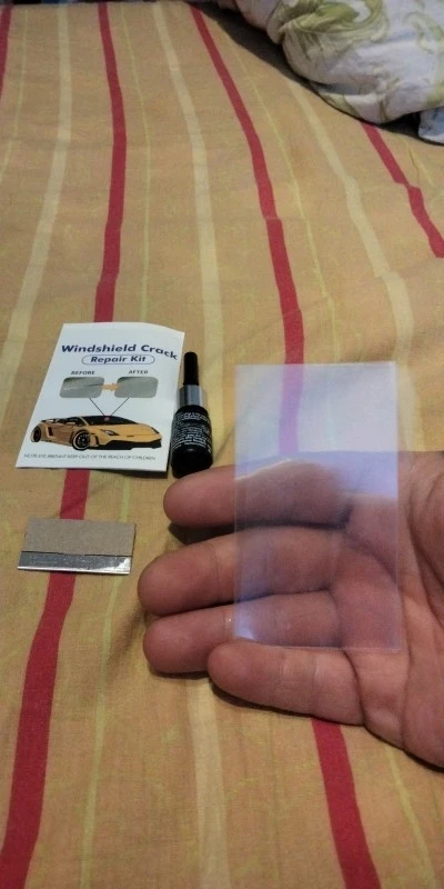 пришел набор в простом пакете, всё целое, к этому претензий нет. взяла у сестры уф-лампу(которой гель-лак сушат), всё сделала по инструкции. смола, на которую не хватило уголка пленки не застыла даже под уф-лучами, а вот под пленкой схватилась хорошо. пленка убралась легко, но никакого эффекта нет. скол на стекле вообще не изменился, может, конечно, от того, что он не свежий, надеюсь, что хотя бы дальше не "поползет"