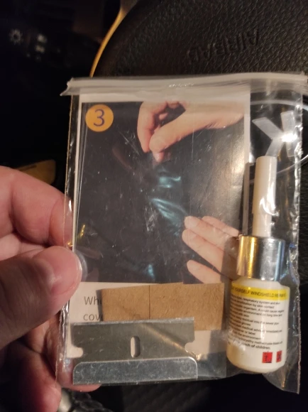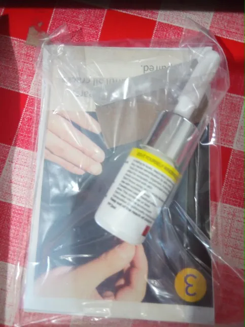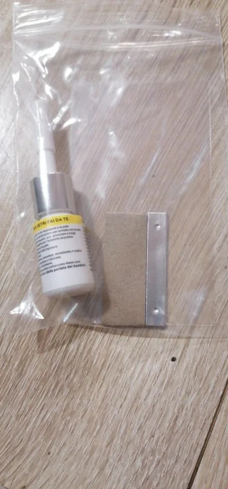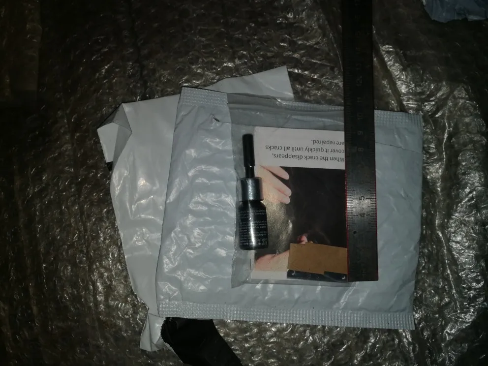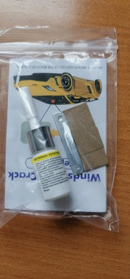 В деле пока не проверял, но все в целостности. В комплекте инструкция, лезвие для зачистки трещин , прозрачные плёночка для наклеивания и сам пузырёк .