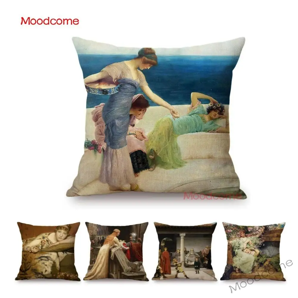 Наволочка для диванной подушки Alma-Tadema в древнем римском стиле, роскошная жизнь, элегантная женская хлопковая льняная наволочка для дивана, домашний декор, наволочка для художественной подушки