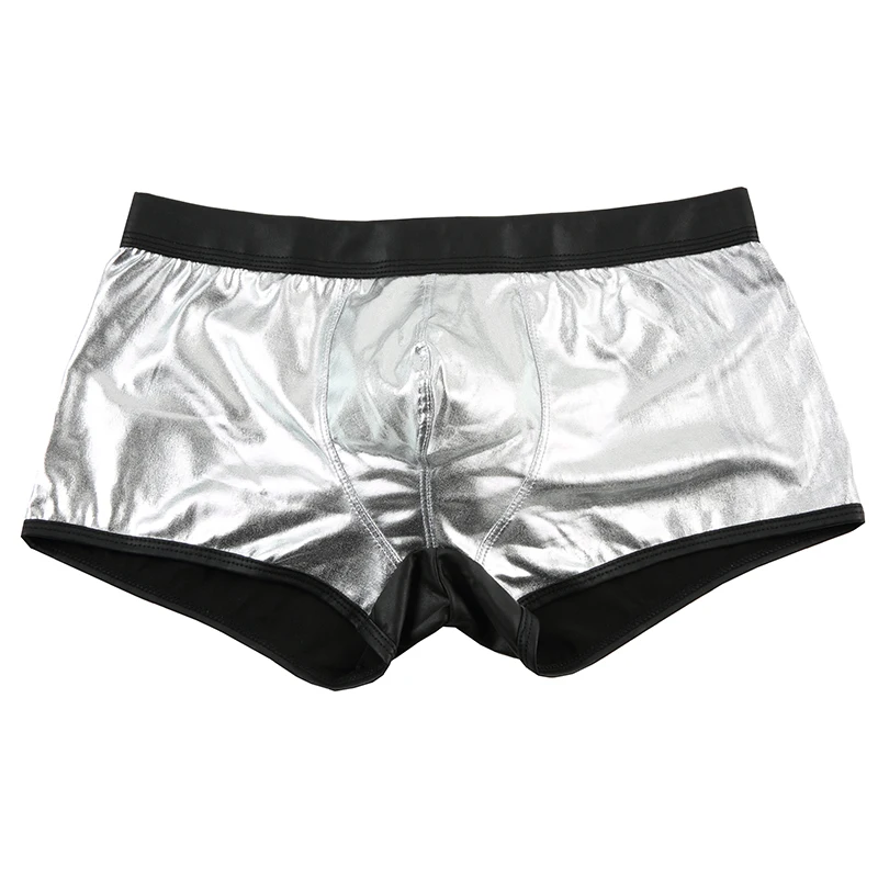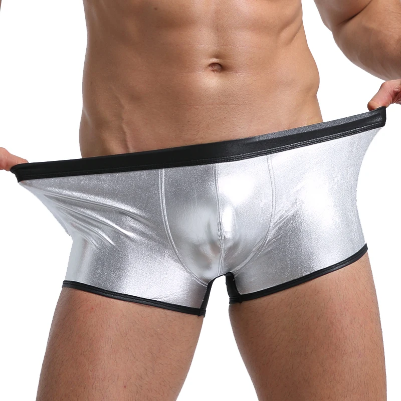 Мужские сексуальные шорты-боксеры из искусственной кожи, золотистые...