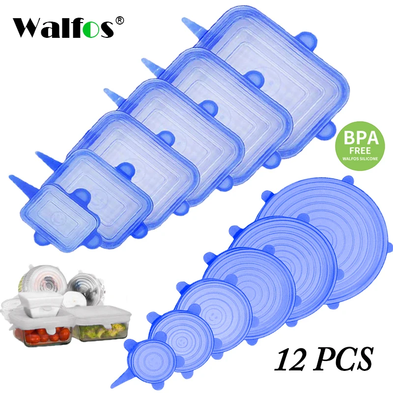 Универсальные силиконовые колпачки Walfos, многоразовые, эластичные, регулируемые, силиконовая крышка для еды, 12 шт.