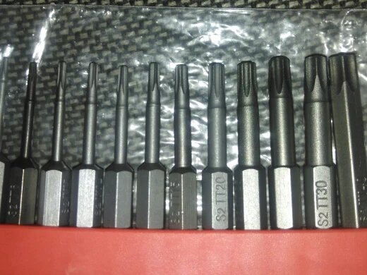 Приехали почтой за 40 дней. Качество хорошее, сталь S2 заметно прочнее обычных now name бит, легко их царапает. Обработка тоже лучше, думаю сгодятся и для постоянной работы, у меня 50-100 винтов. сутки, посмотрим как быстро обломятся грани. На первой фотке заметно, что данные биты из S2 обработаны лучше и при обработке снимался более тонкий слой. Приведена NOW NAME бита.