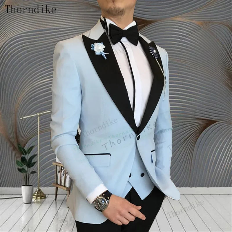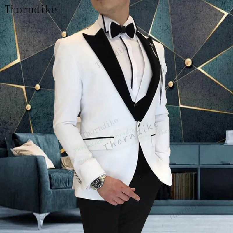 Thorndike, белый и черный цвет, мужской облегающий костюм для жениха на заказ, 3 предмета, Свадебный мужской костюм (пиджак + брюки + жилет)