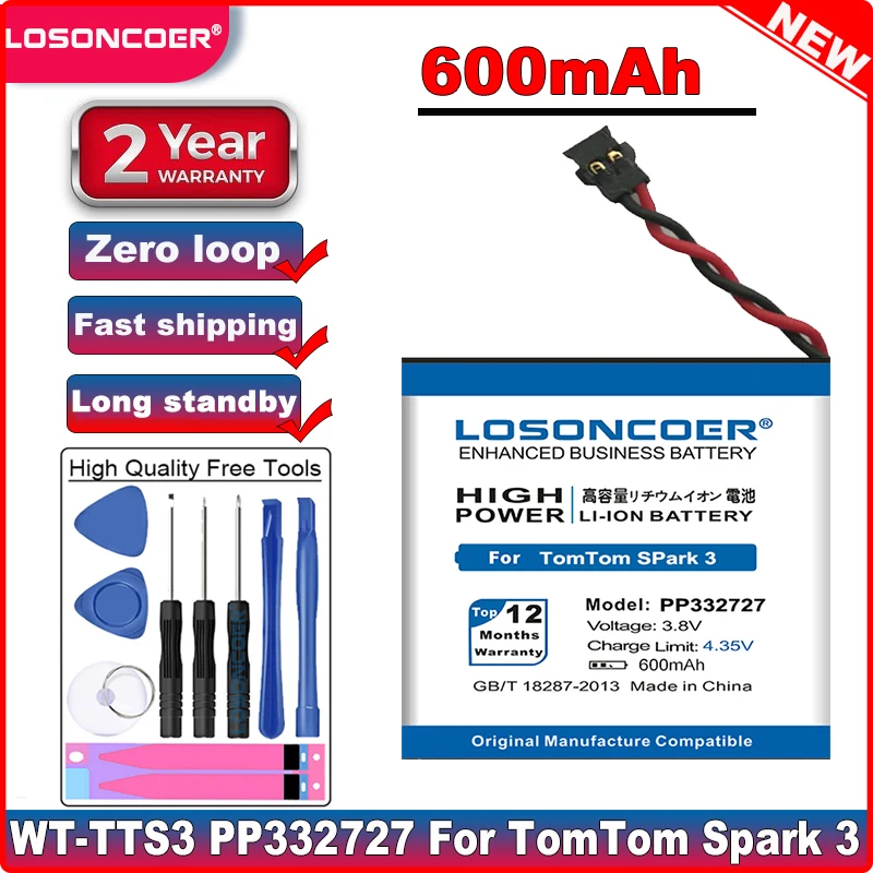 Аккумулятор LOSONCOER 600 мАч WT-TTS3 для умных часов TomTom Spark 3 Smartwatch PP332727