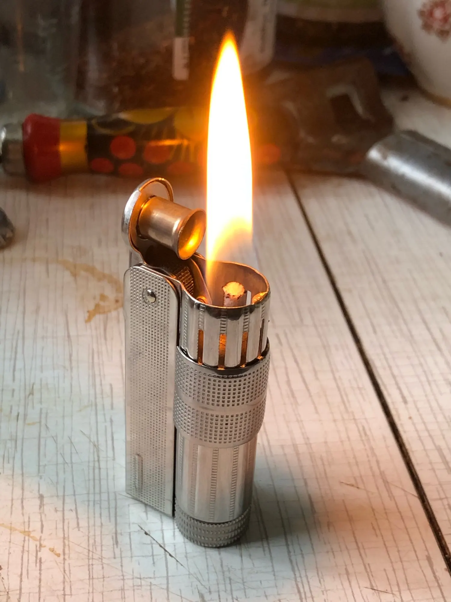Хорошая зажигалочка !!! Не плохо выполнена ,прекрасно работает ,в общем на каждый день то что надо !!! Я доволен !!! Единственное ,добавил в ёмкость для бензина войлочный пыжик , чтобы было как положено во всех бензиновых зажигалках !