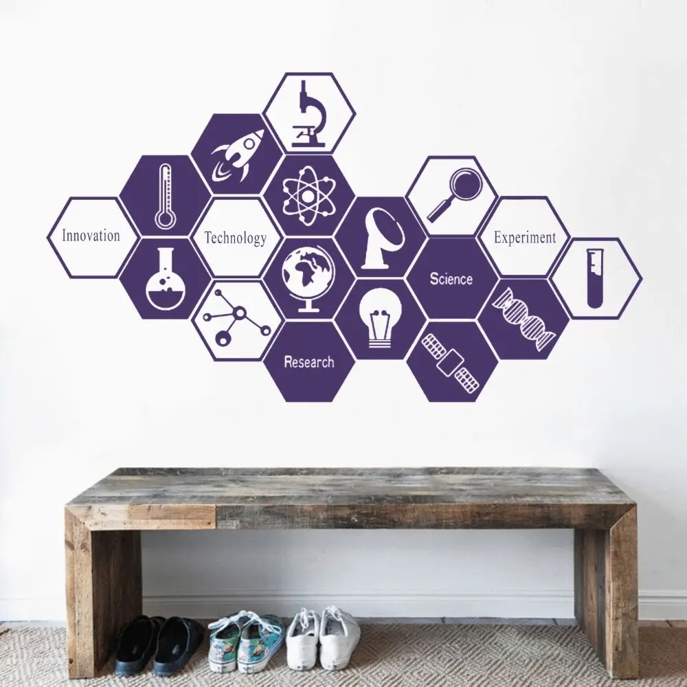 Виниловая наклейка с изображением научных иконок, настенная наклейка, домашняя гостиная и научная лаборатория, съемное украшение A002894