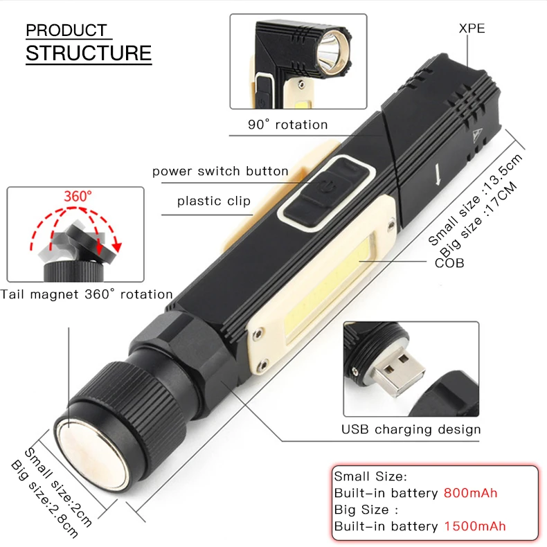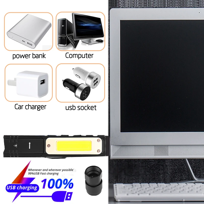 Фонарь сисветодиодный Аккумуляторный с зарядкой от USB и встроенным аккумулятором, 10000 лм