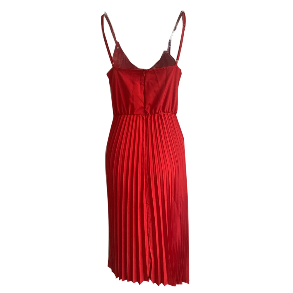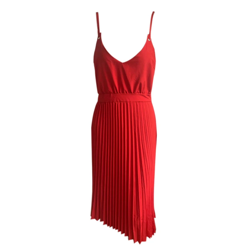 Платье женское Плиссированное на бретелях-спагетти, пикантное повседневное офивечерние вечернее, с V-образным вырезом, красныйрозовыйчерный, лето 2020