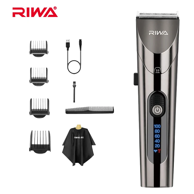 2020 Riwa перезаряжаемая машинка для стрижки волос RE-6305 серая стальная машинка для парикмахера электрический триммер для волос со светодиодным экраном моющийся