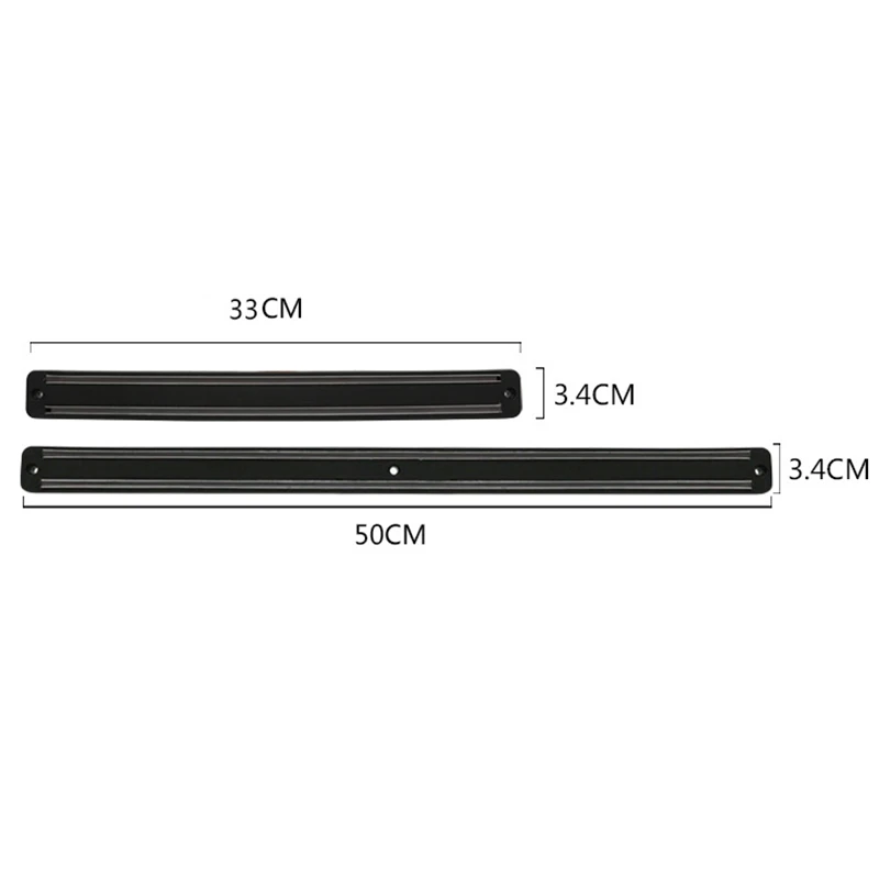 Размер: 330*34*13 мм/500*34*13 ммМатериал: магнит, резина + пластикЦвет: черныйПосылка: 1 держатель ножа, 2 винта