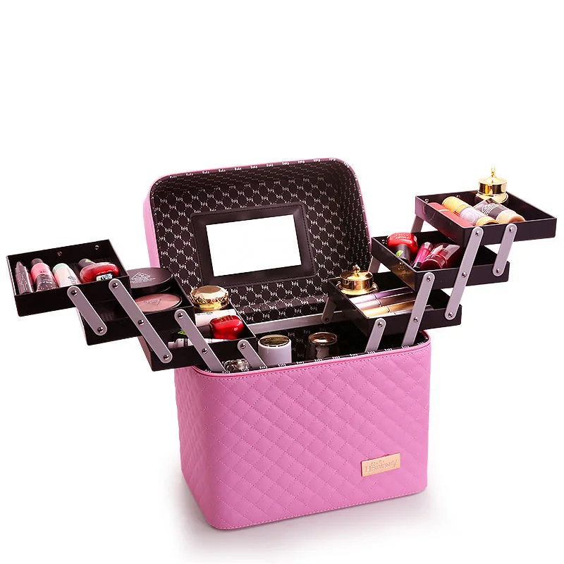 Профессиональная вместительная косметичка для женщин, модная многослойная сумка для туалетных принадлежностей, портативный чемоданчик для хранения косметики