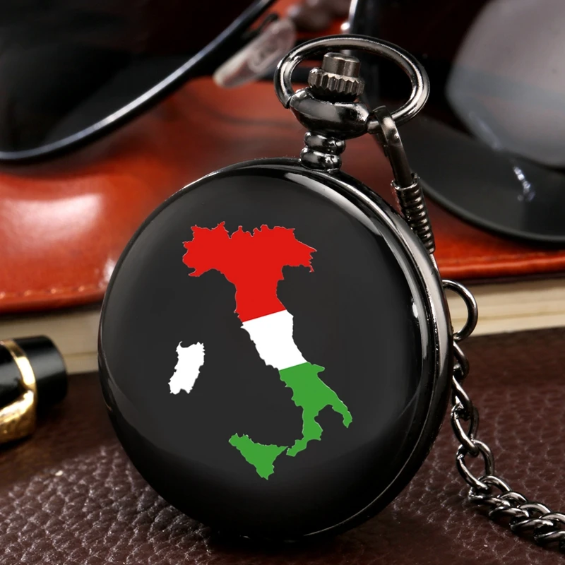 Зеленый, белый, красный, Италия, итальянский флаг, итальянская карта, кварцевые карманные часы, национальная страна, цепочка с флагом, ожерелье, ювелирные изделия, подарки