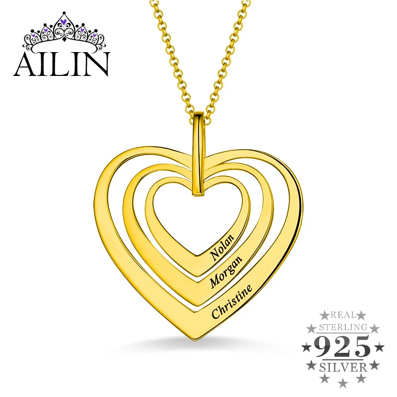 Ожерелье с сердцем AILIN из стерлингового серебра 925 пробы 18 К позолоченное семейное ожерелье с гравировкой на заказ женские подарки на день рождения ювелирные изделия