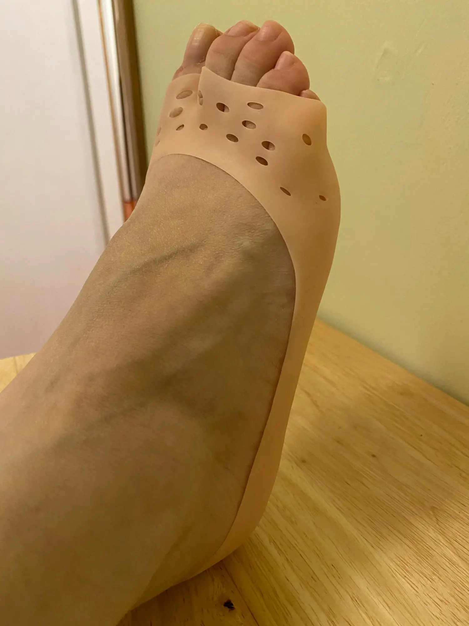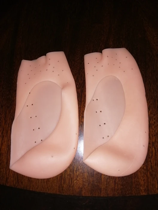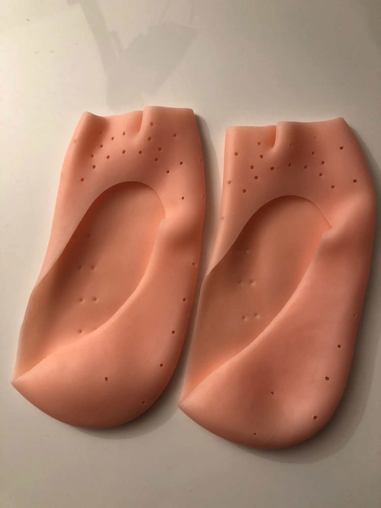 Силикон хороший и мягкий, но не для того, чтобы держать или оставаться на ногах. Рекомендуем носить носки, чтобы они были закрыты.