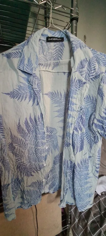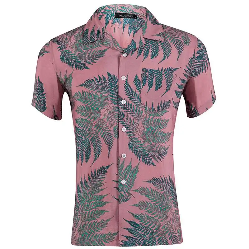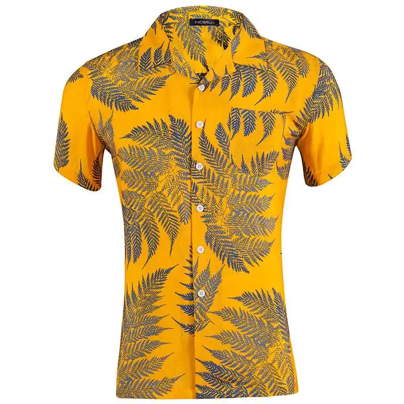 Рубашка мужская INCERUN, летняя, с принтом в виде тропических листьев, с коротким рукавом, для отпуска, рубашка, топы, S-5XL