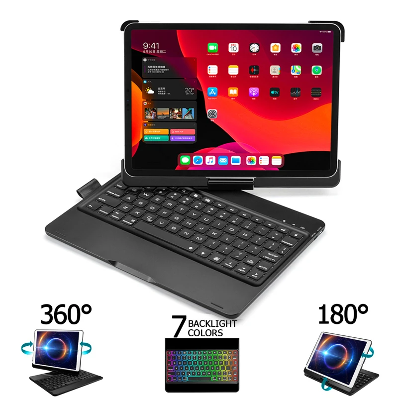 Для iPad Pro 11 2018 клавиатура вращение на 360 градусов 7 цветов с Подсветкой Bluetooth чехол для клавиатуры Чехол для iPad 11 планшет карандаш держатель оболочка Описание: