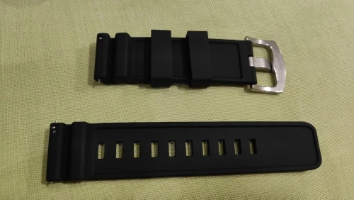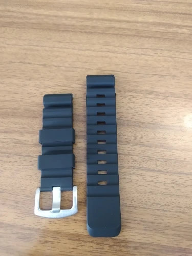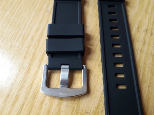 Качественный ремешок с мощной пряжкой, если поменять оси на меньший размер, то ремешок можно носить с часами с размером ушек 22 мм.
