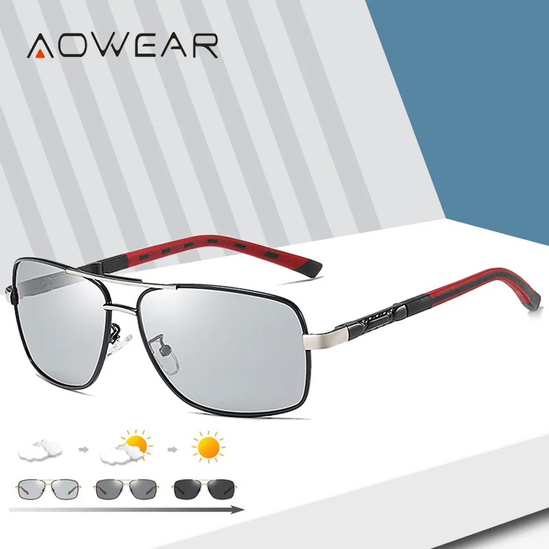 AOWEAR квадратные фотохромные поляризационные солнцезащитные очки м...